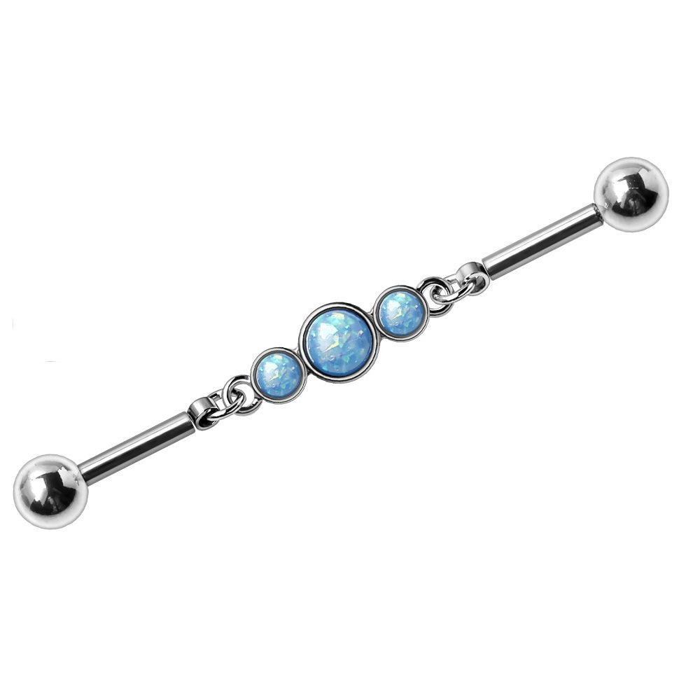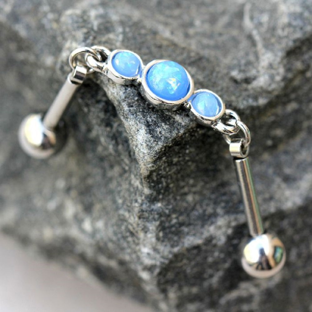 Blue Opalite Bubbles Chain Industrial Barbell - 316L Stainless Steel