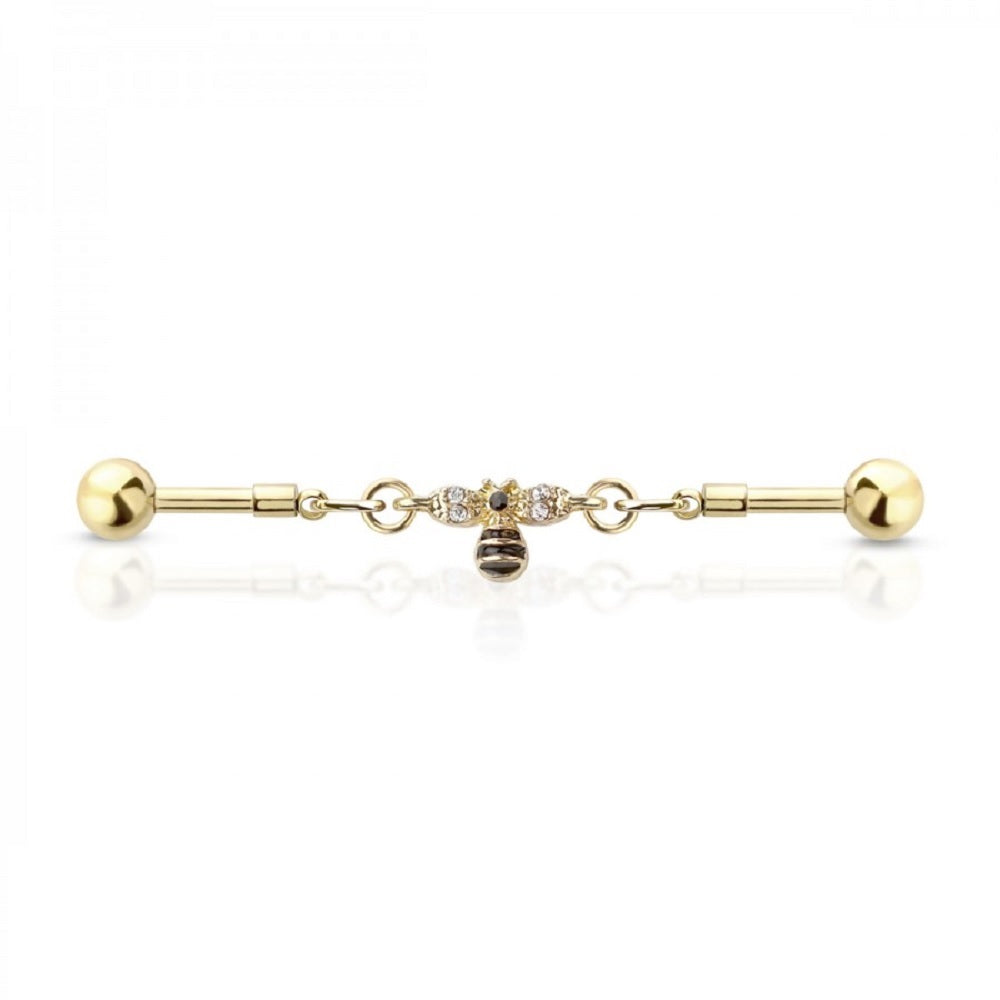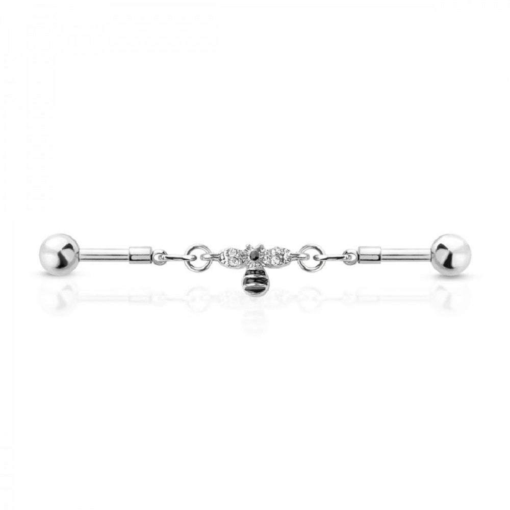 Chain Link CZ Paved Bee Industrial Barbell - 316L Stainless Steel