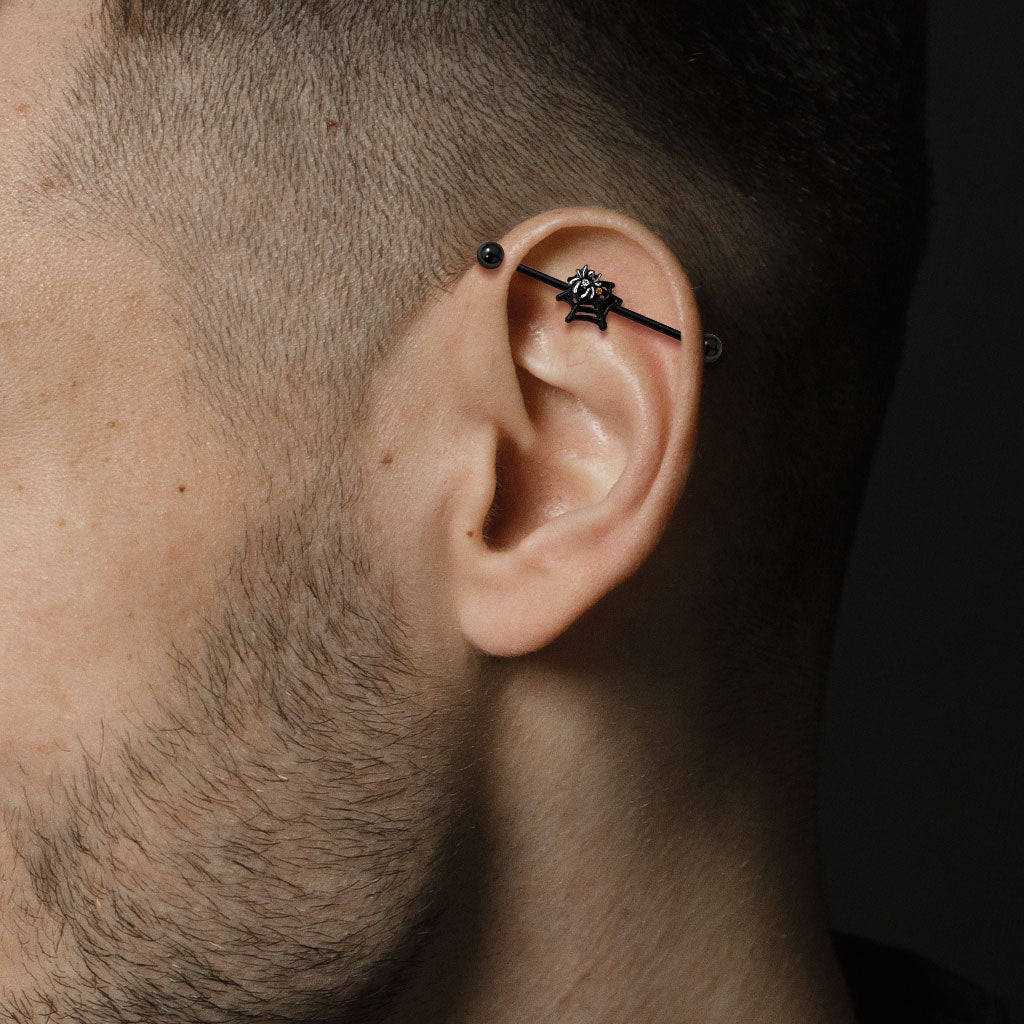 Crystal Set Spider on Web Black Industrial Barbell - Stainless Steel