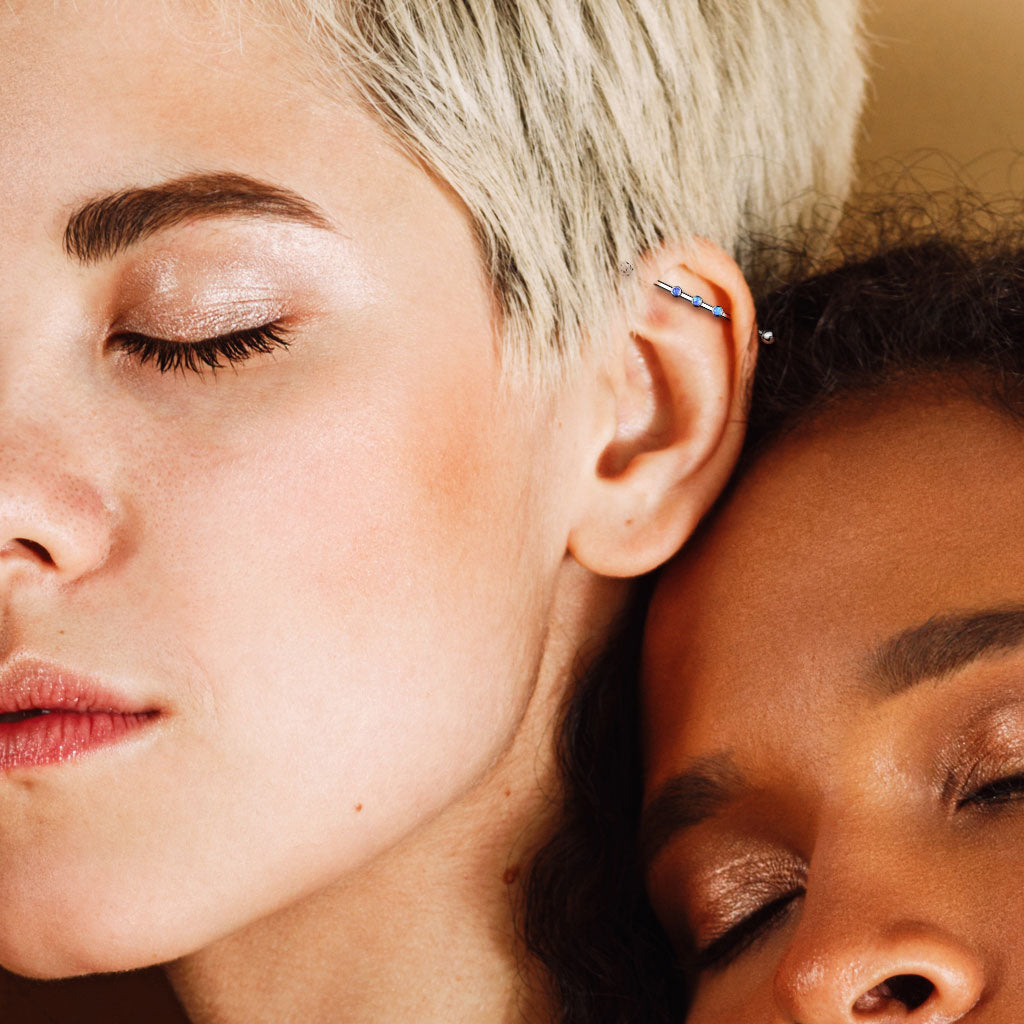 Internally Threaded Triple Round Synthetic Opal Industrial Barbell - Stainless Steel