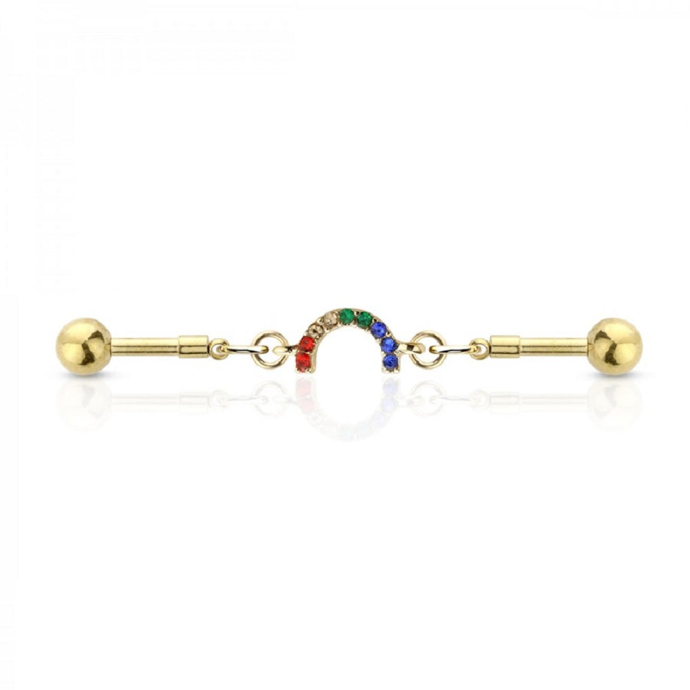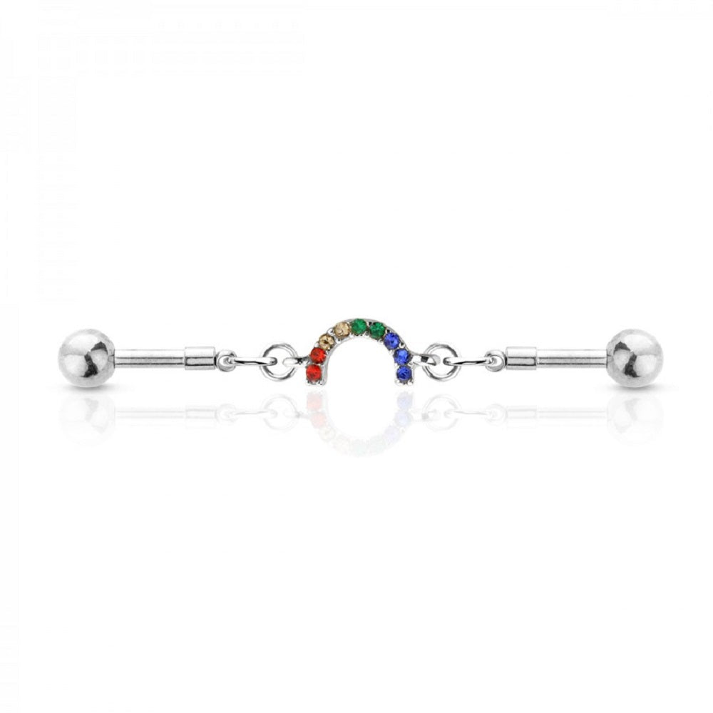 Multicolored Rainbow Gem Chain Link Industrial Barbell - 316L Stainless Steel