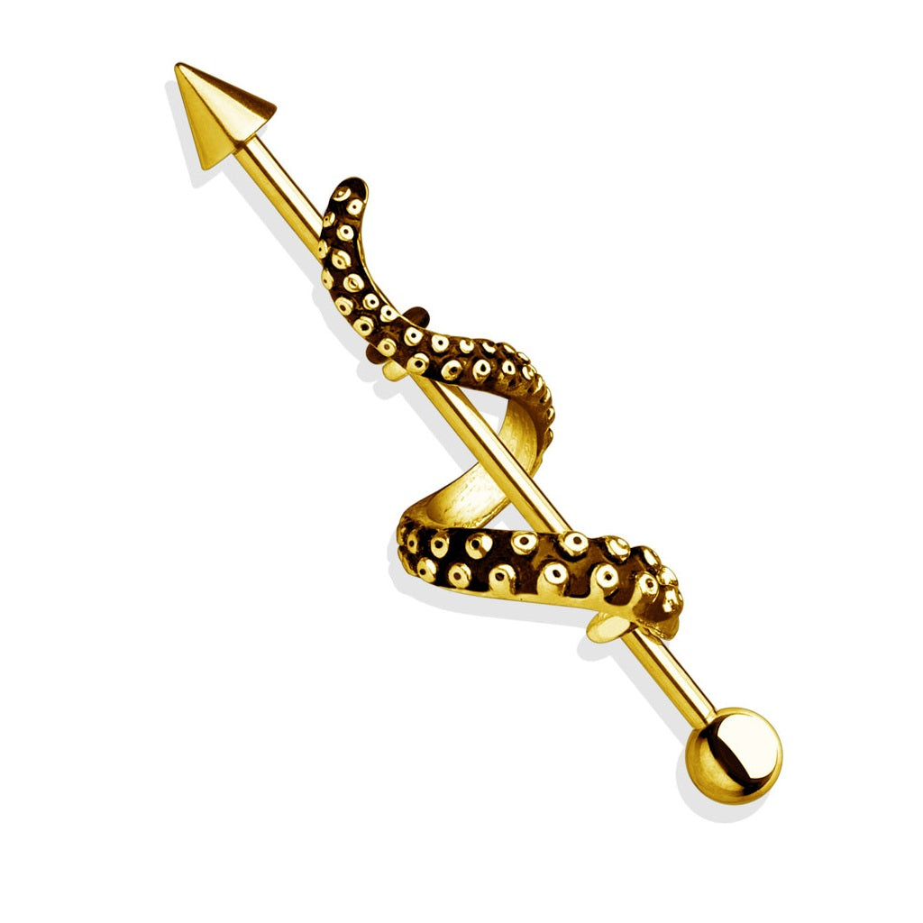 Octopus Tentacle Wrapped Industrial Barbell - Stainless Steel
