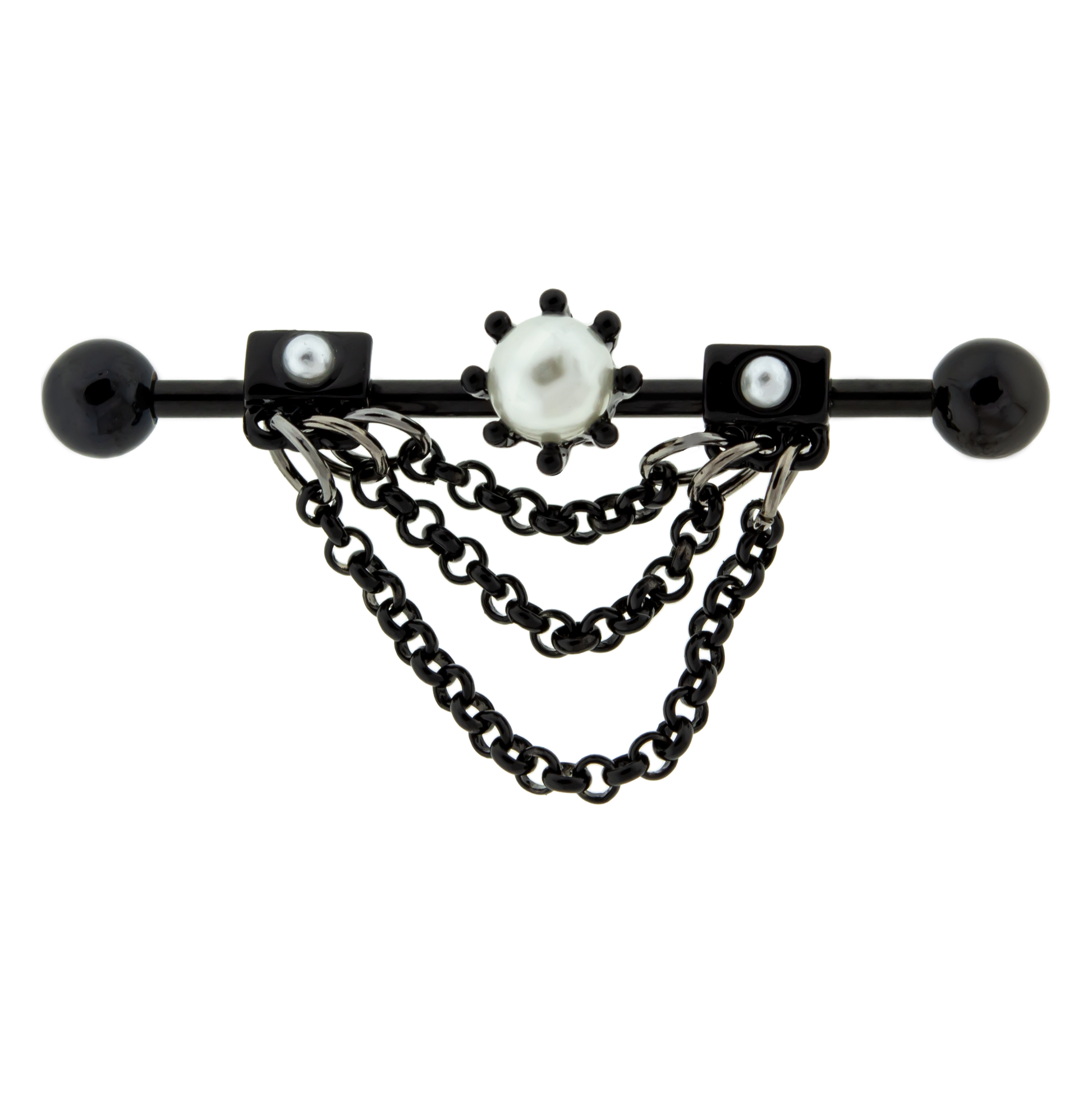 Pearl Center with Dangling Chains Industrial Barbell - 316L Stainless Steel