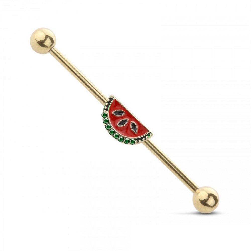 CZ Crystal Paved Watermelon Industrial Barbell - Stainless Steel