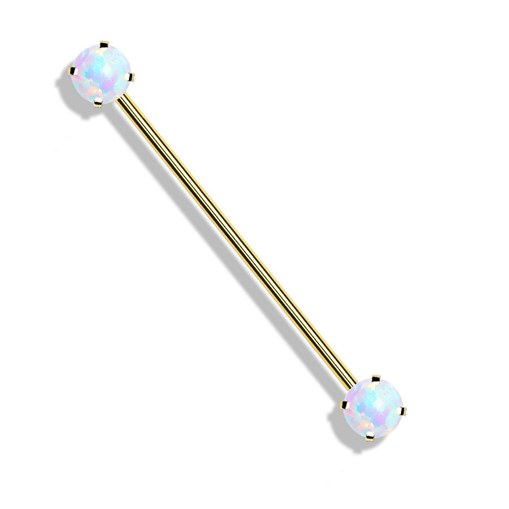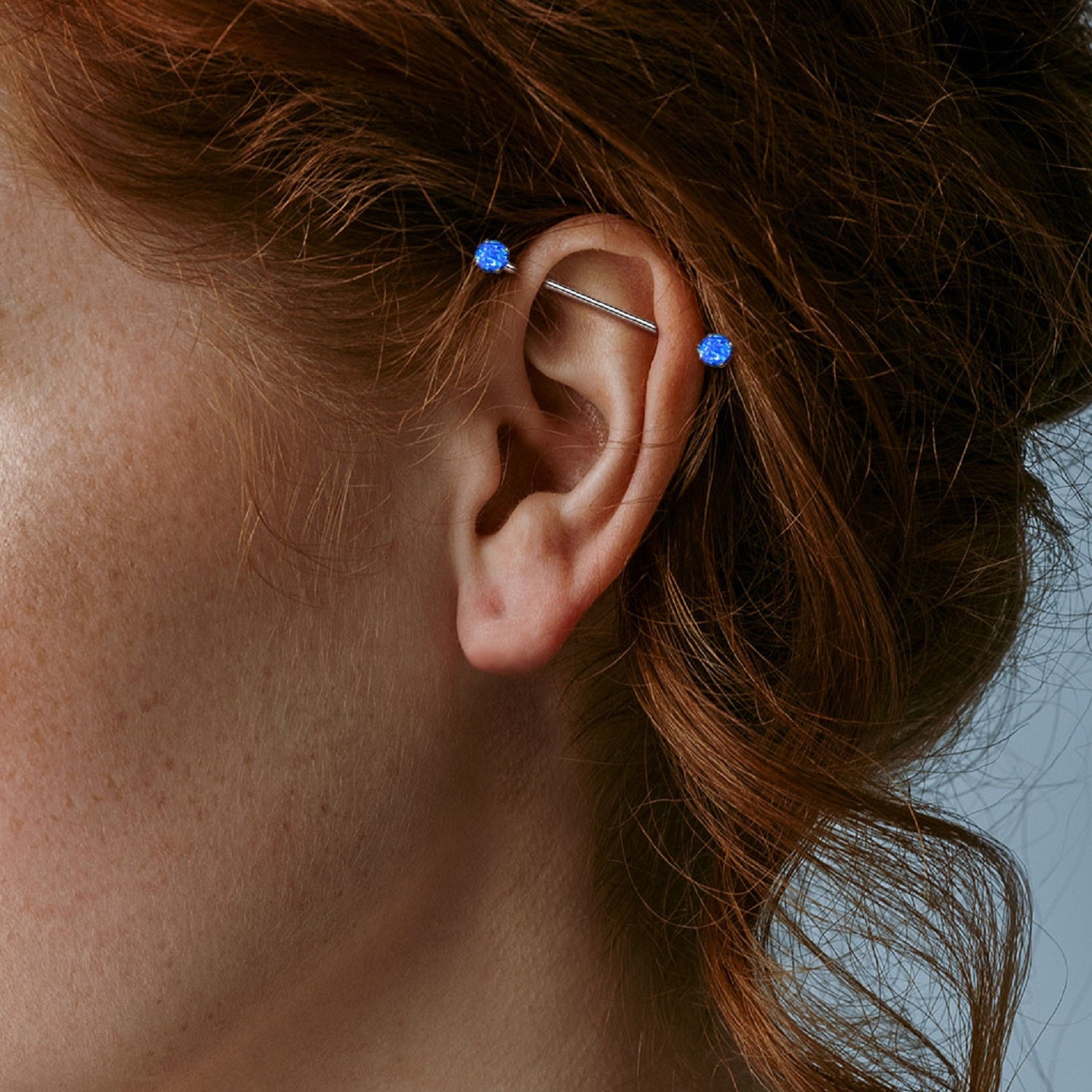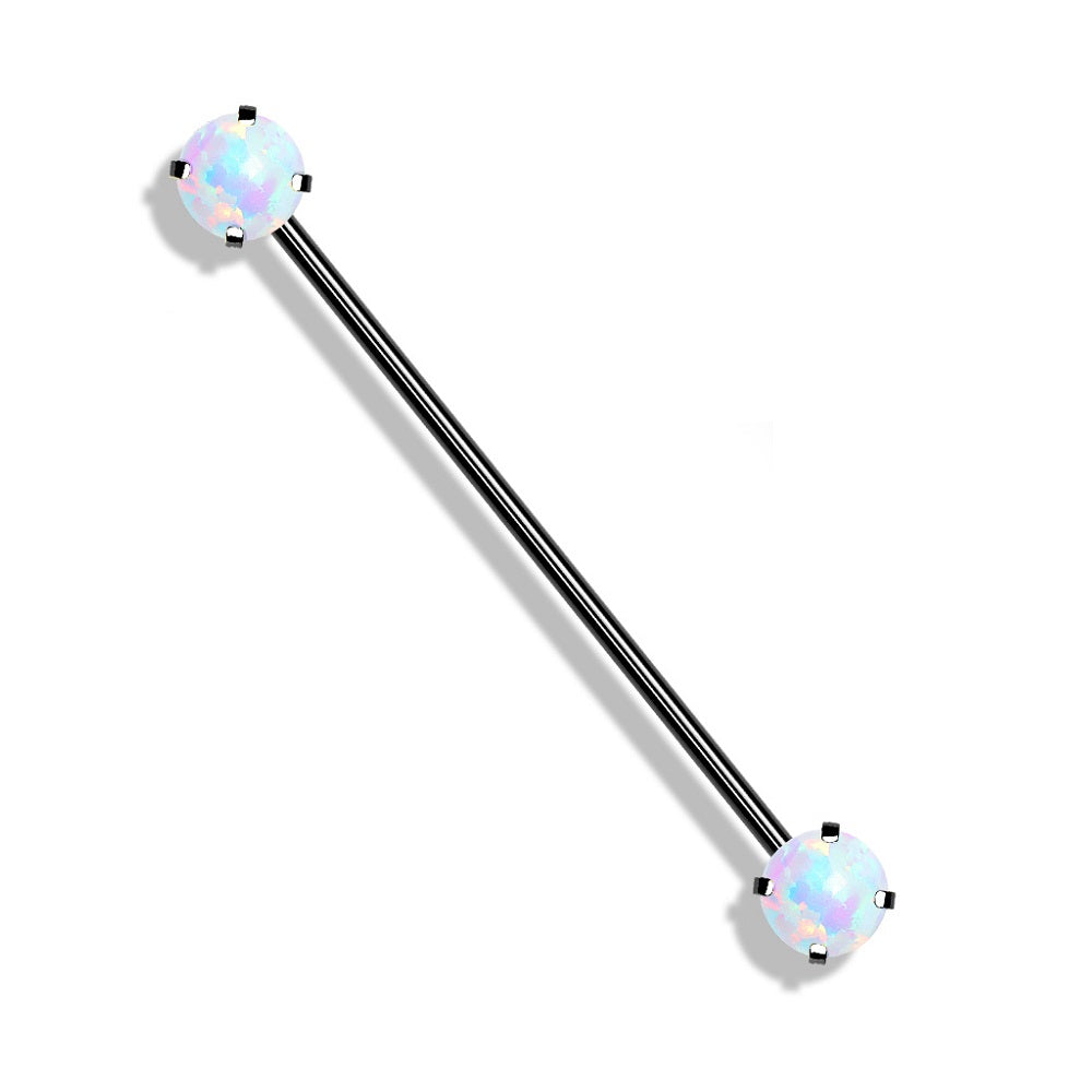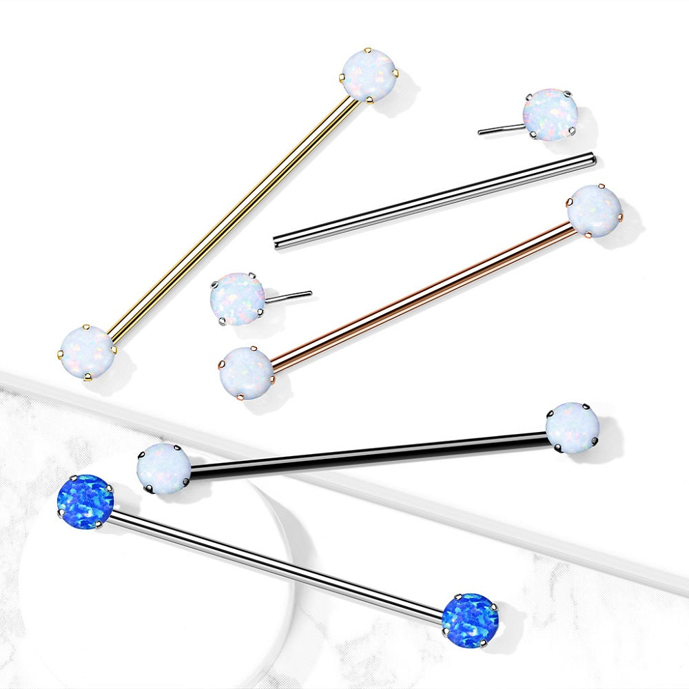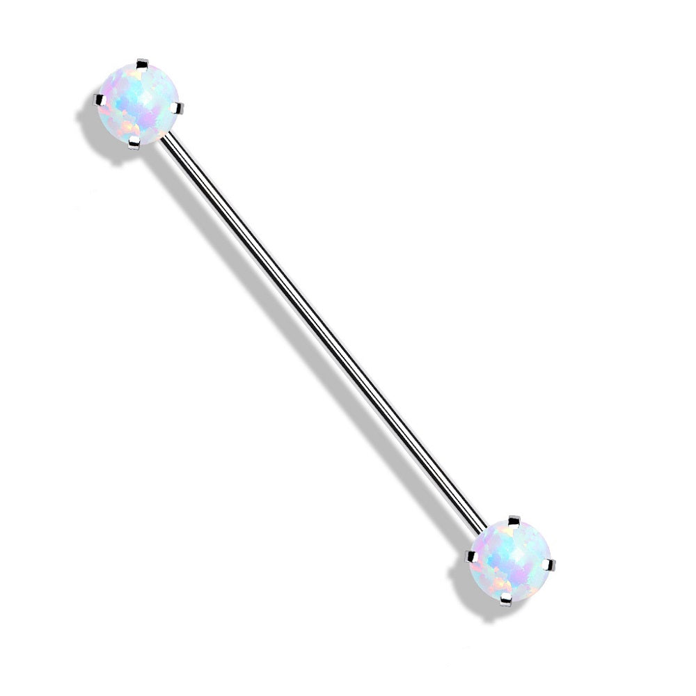 Threadless Push-in Prong Set Synthetic Opal Industrial Barbell - Stainless Steel