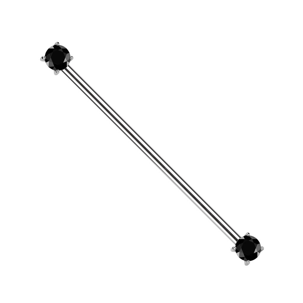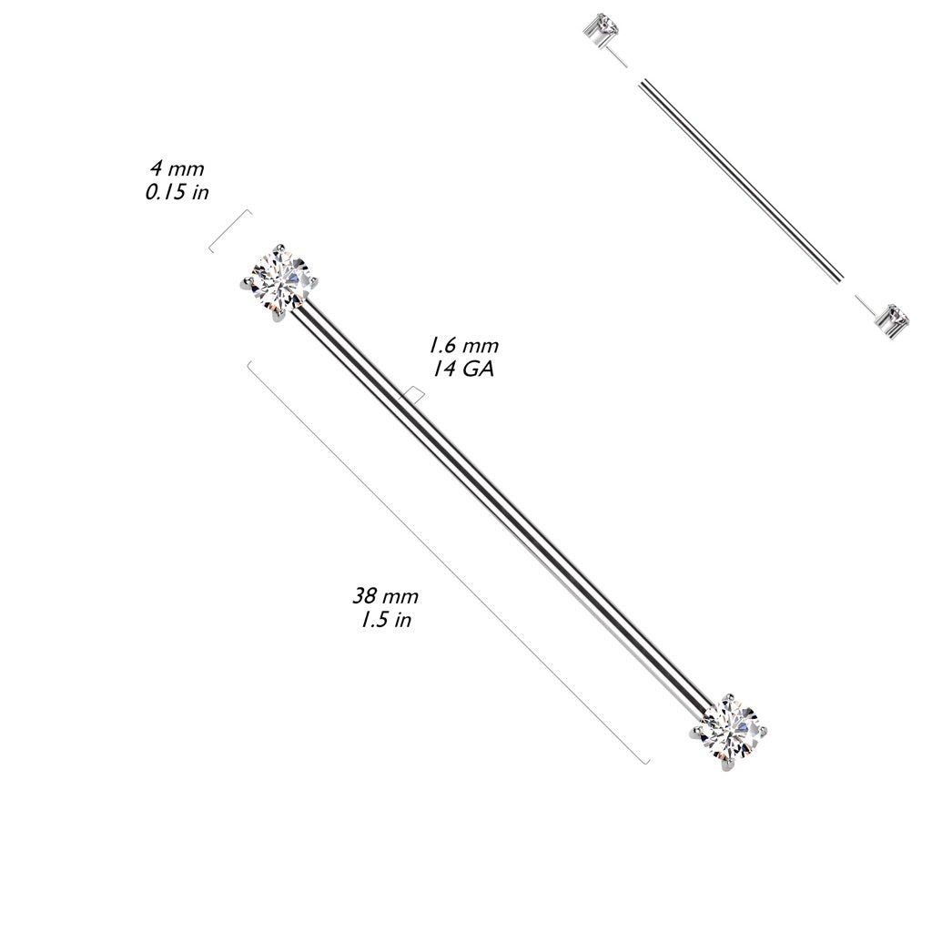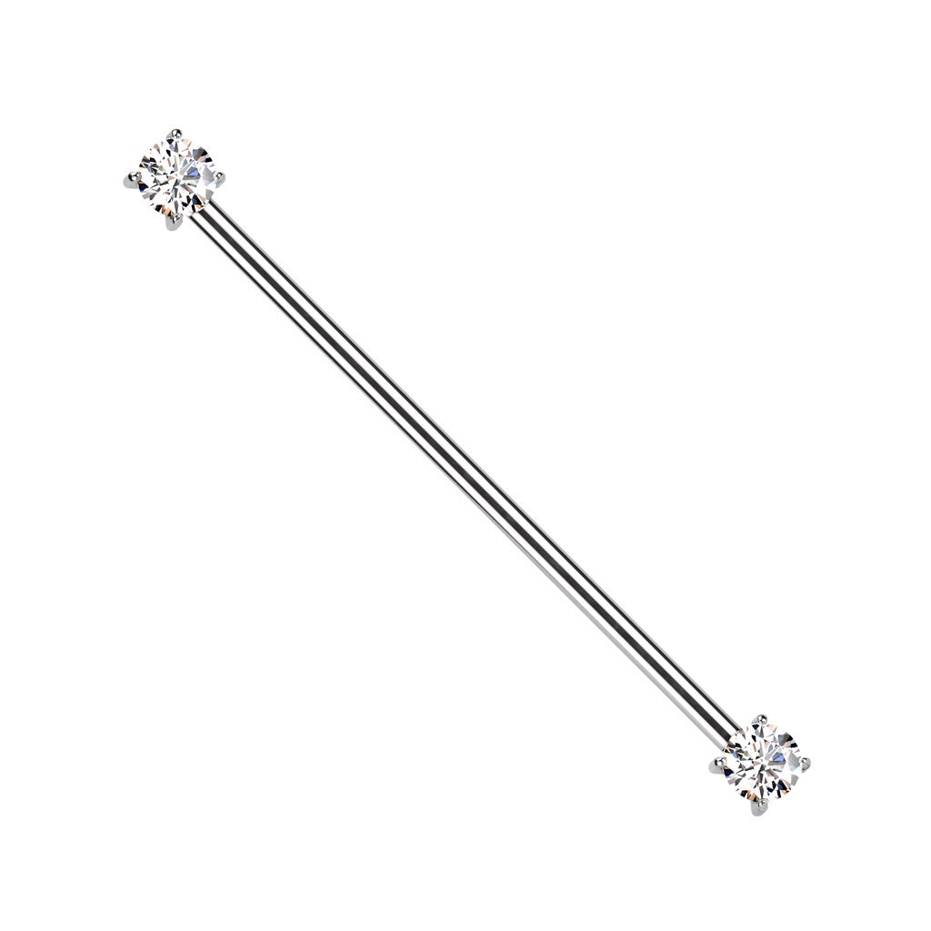 Threadless Push-In Prong Set CZ Crystal Ends Industrial Barbell - ASTM F-136 Implant Grade Titanium