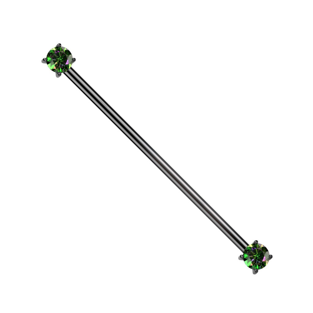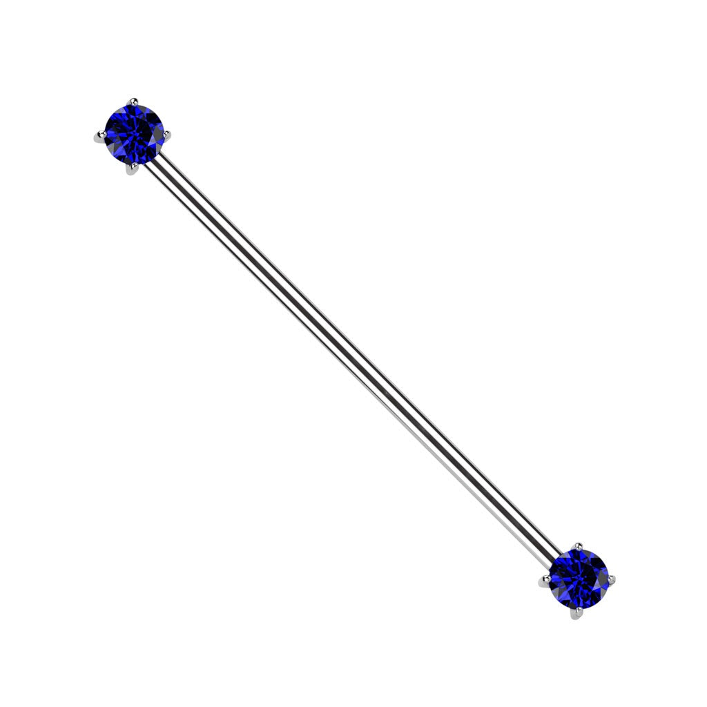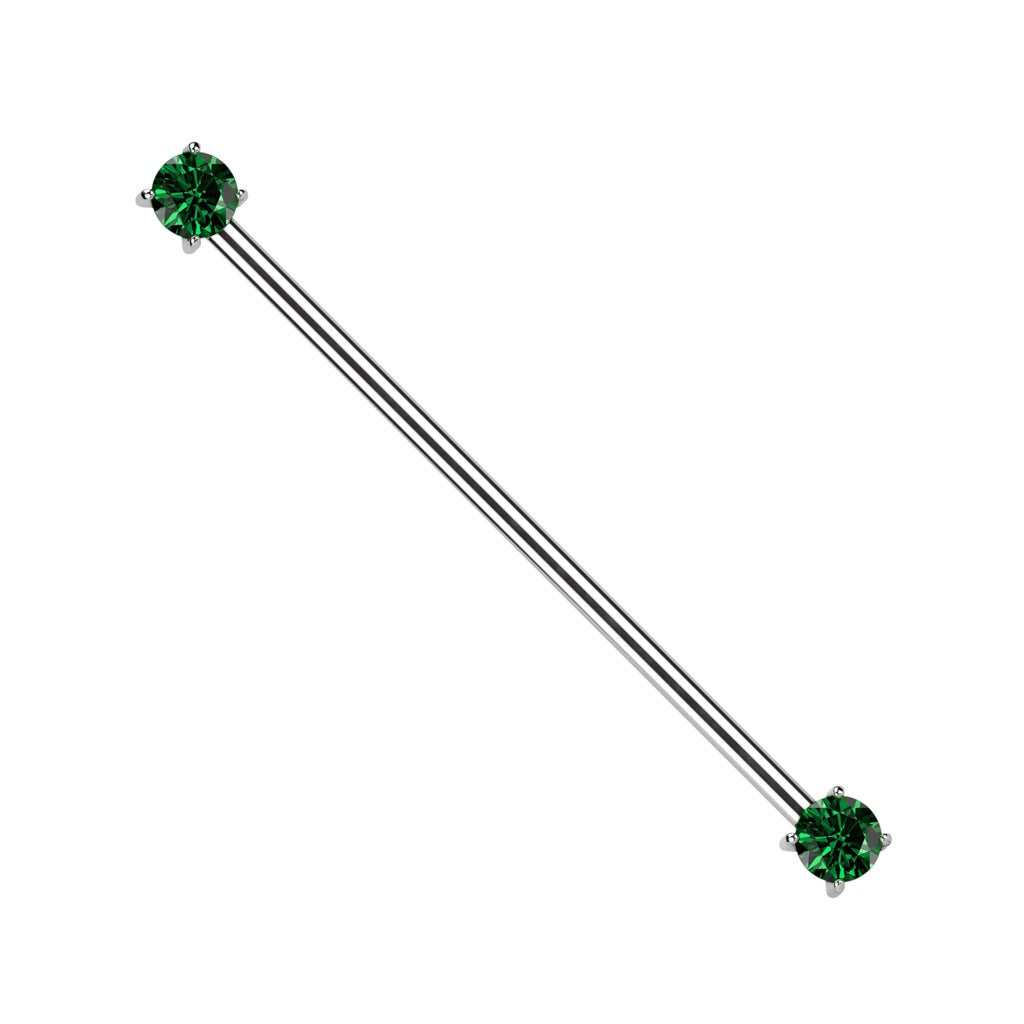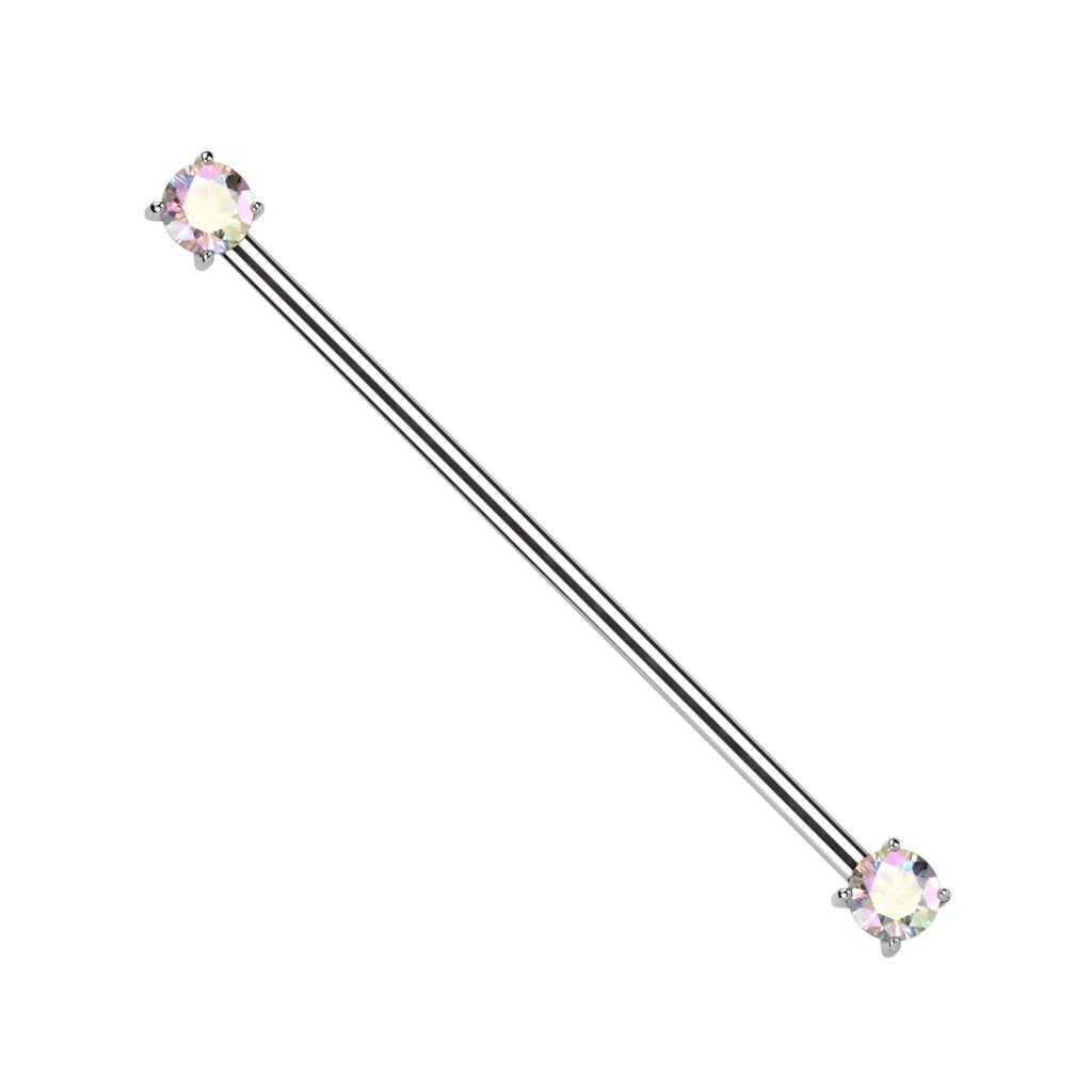 Threadless Push-In Prong Set CZ Crystal Ends Industrial Barbell - ASTM F-136 Implant Grade Titanium
