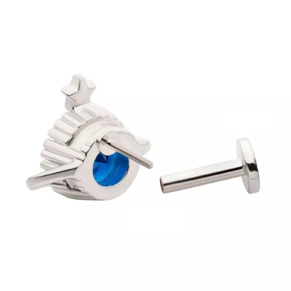 Blue CZ Crystal Planet and Star Threadless Flat Back Stud - 316L Stainless Steel