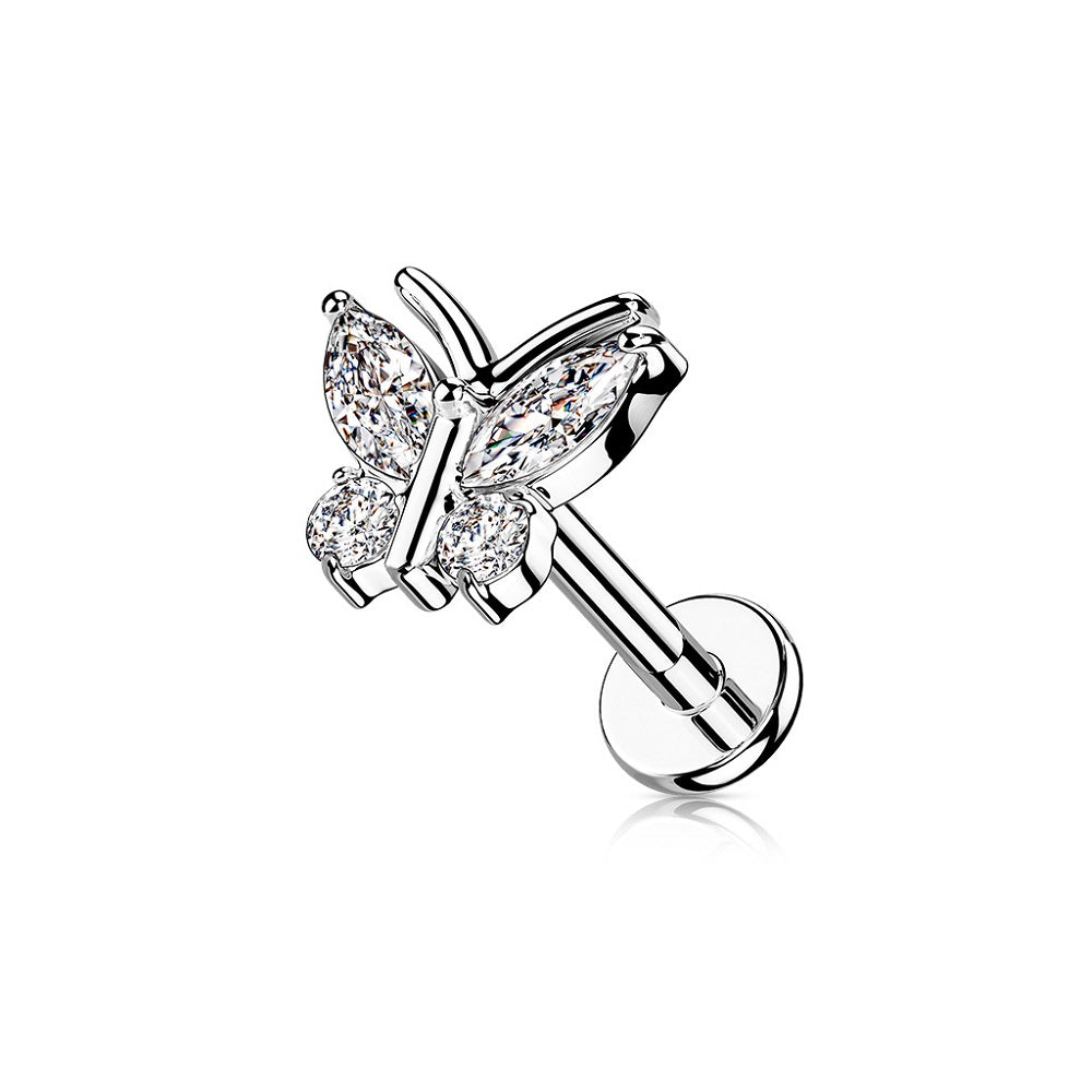 CZ Crystal Butterfly Internally Threaded Flat Back Stud - 316L Stainless Steel