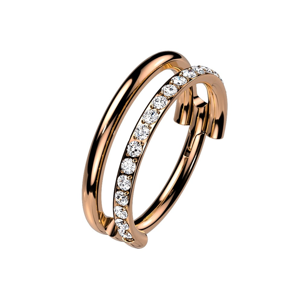 Plain and CZ Crystal Lined Double Hoop Hinged Segment Ring - G23 Implant Grade Titanium