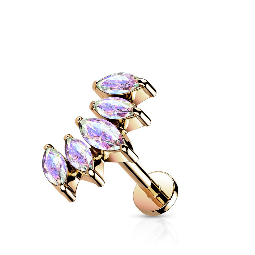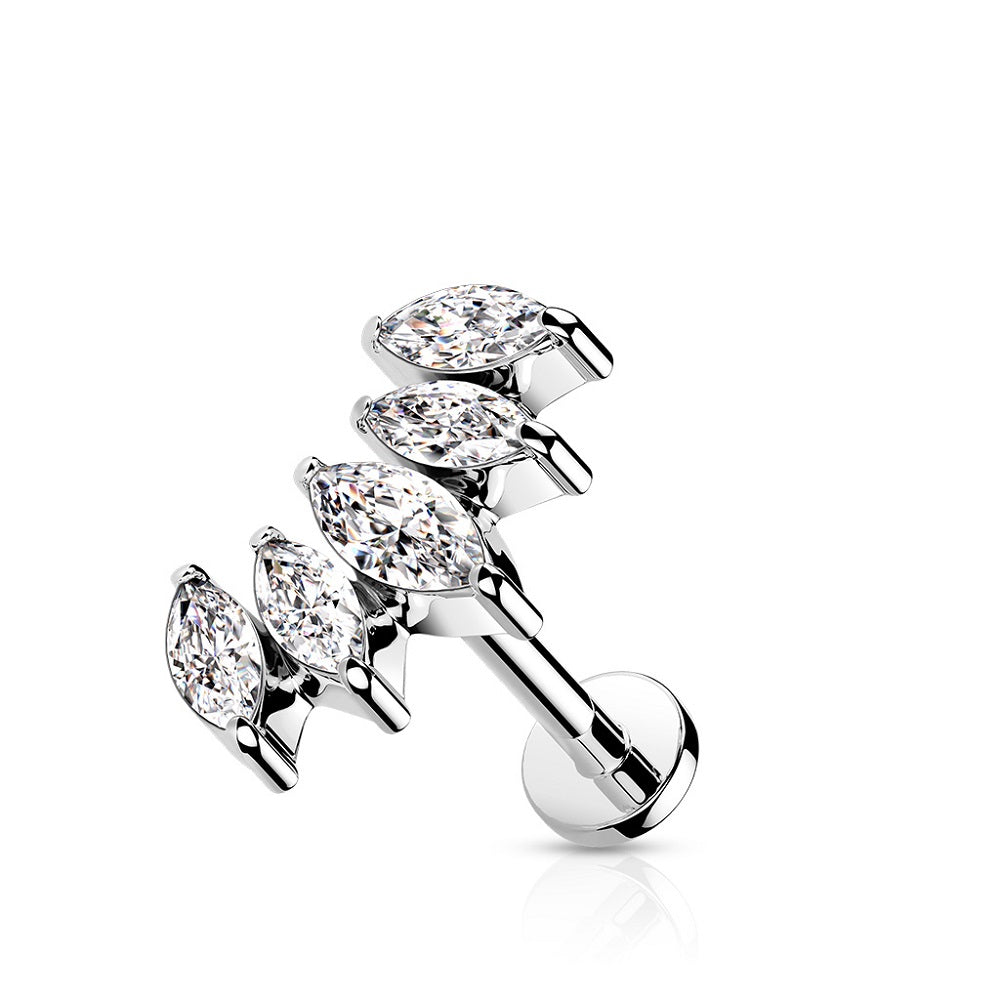 Internally Threaded 5 CZ Marquise Fan Set Curved Top Stud - Surgical Steel