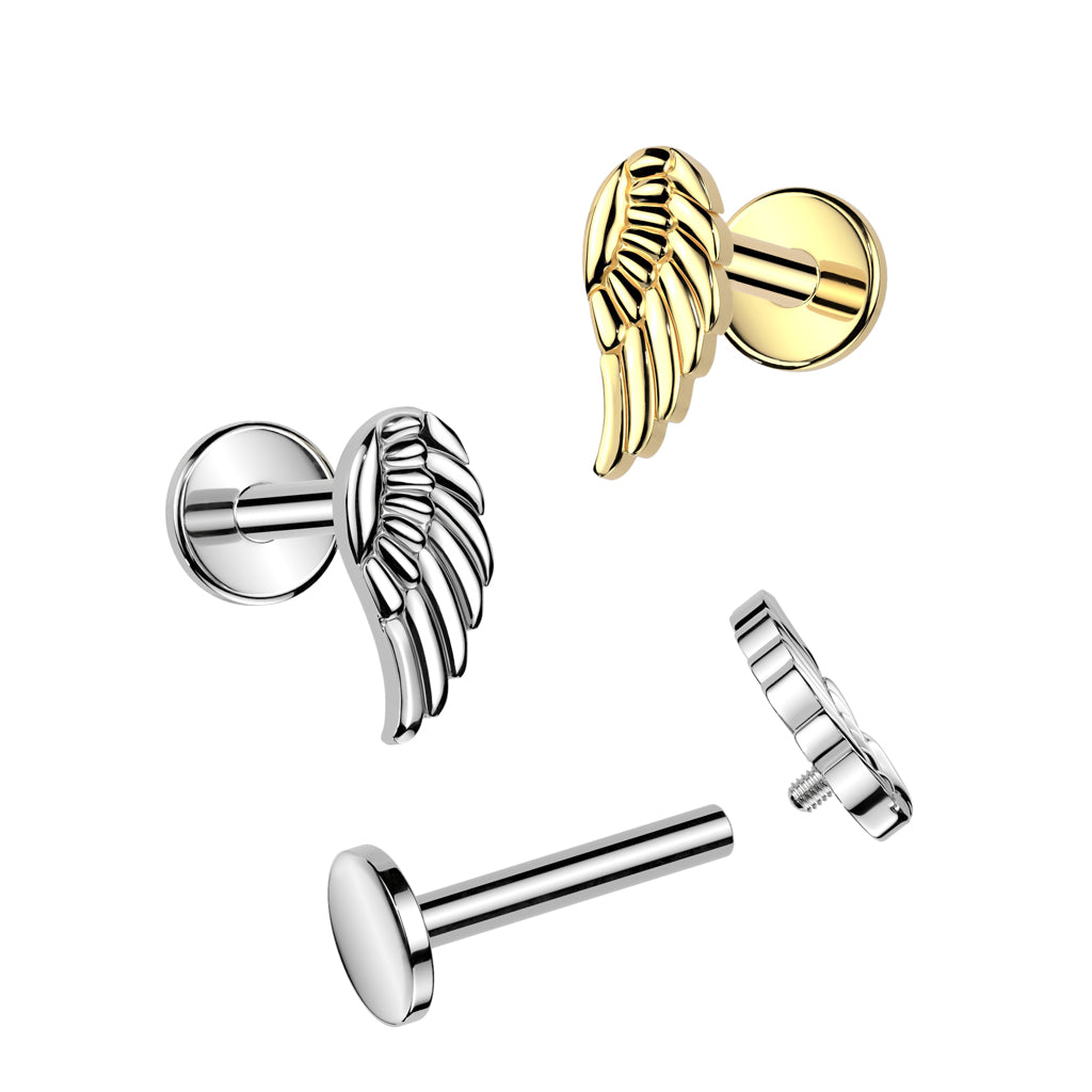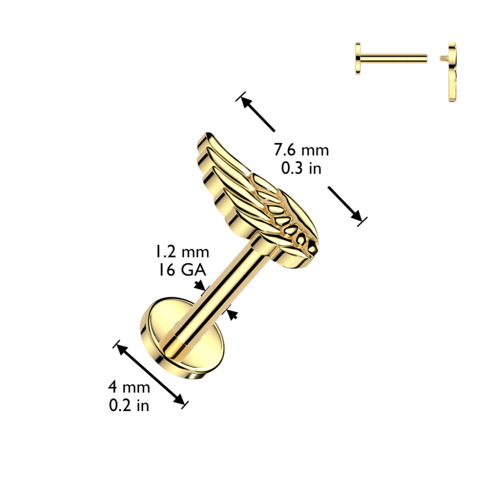 Internally Threaded Angel Wing Top Flat Back Stud - ASTM F-136 Implant Grade Titanium