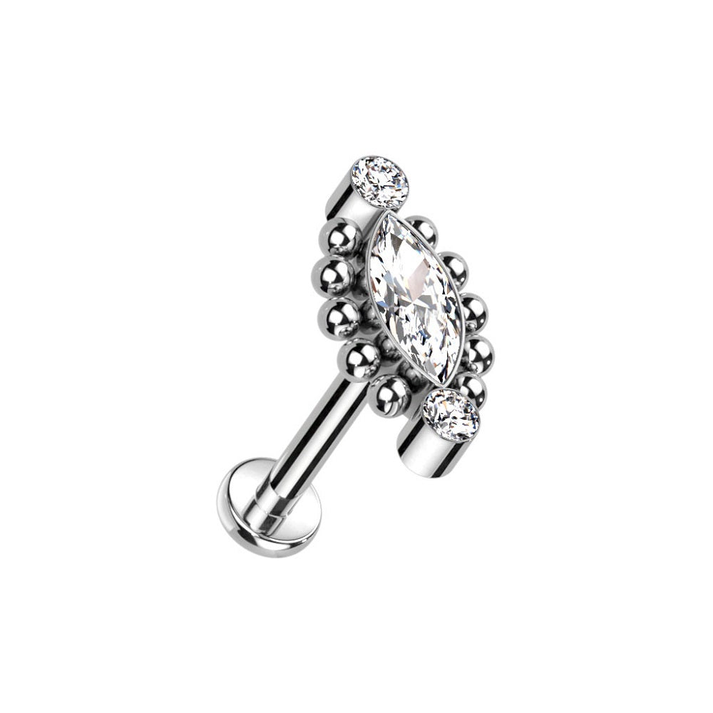 Internally Threaded Ball Outlined CZ Crystal Marquise Stud - F136 Implant Grade Titanium