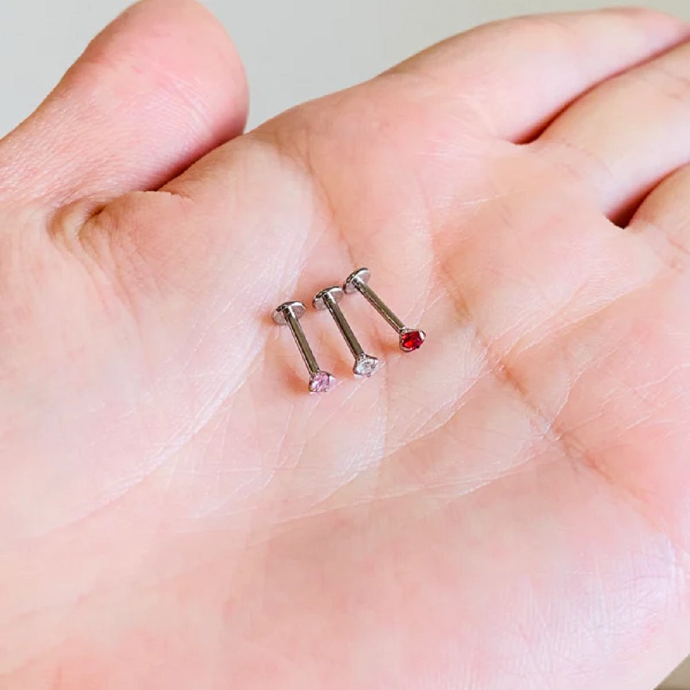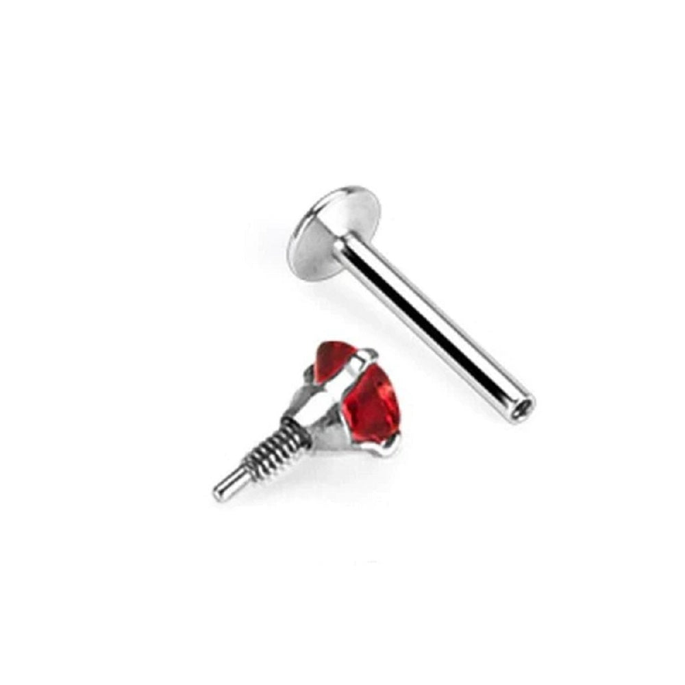 Internally Threaded CZ Crystal Heart Top Flat Back Labret Stud - 316L Stainless Steel