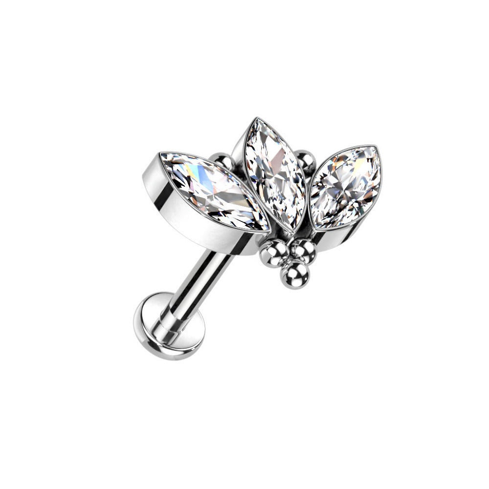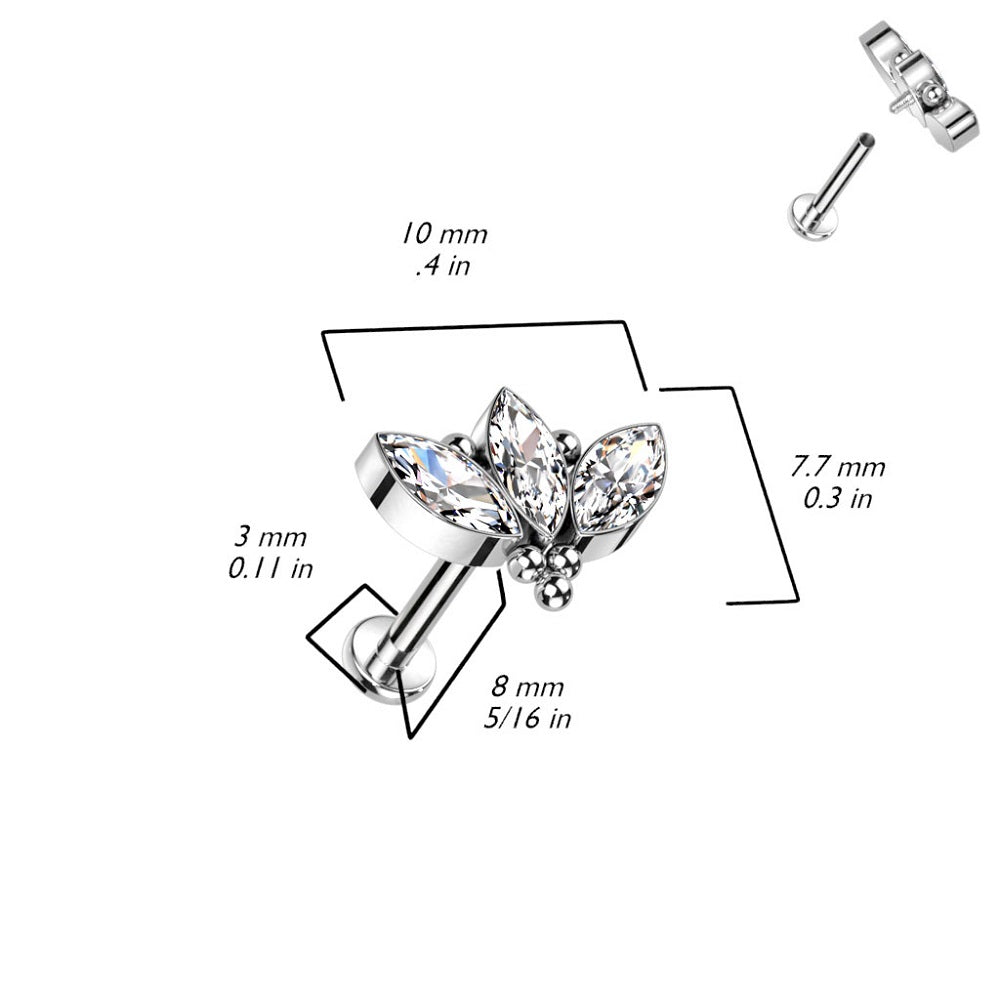 Internally Threaded CZ Crystal Marquise and Ball Cluster Stud - F136 Implant Grade Titanium