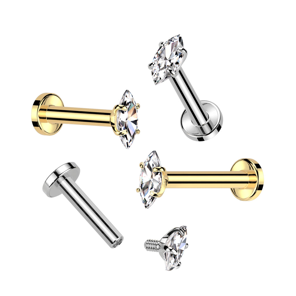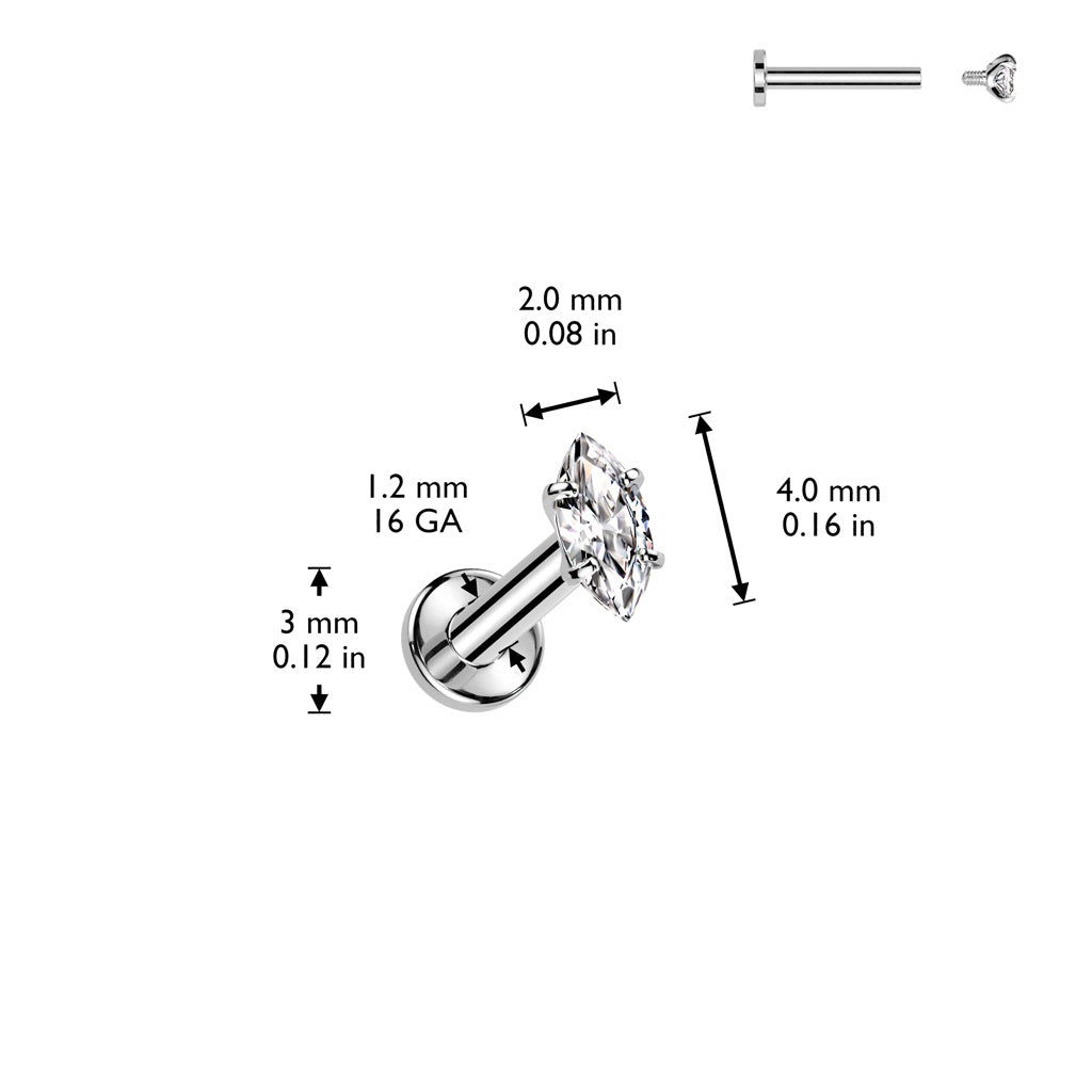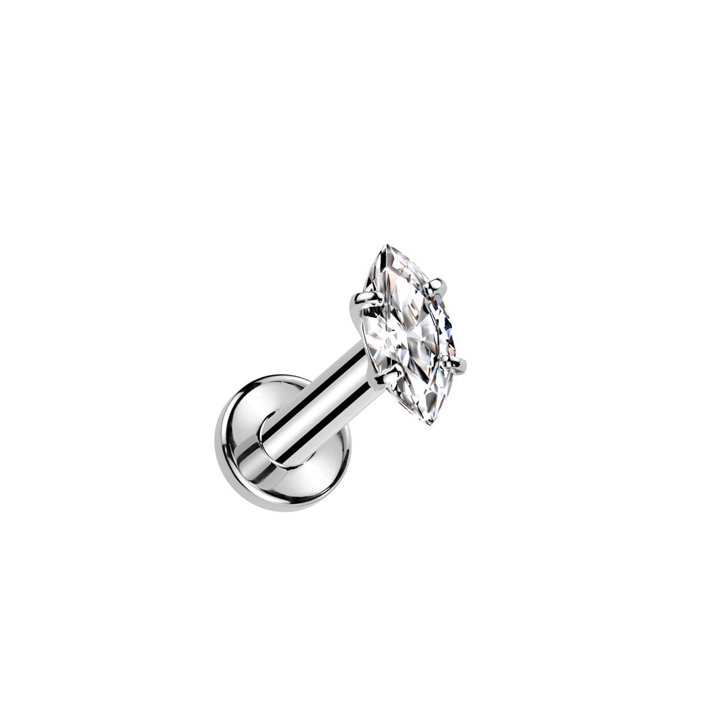 Internally Threaded CZ Crystal Marquise Flat Back Stud - ASTM F-136 Implant Grade Titanium