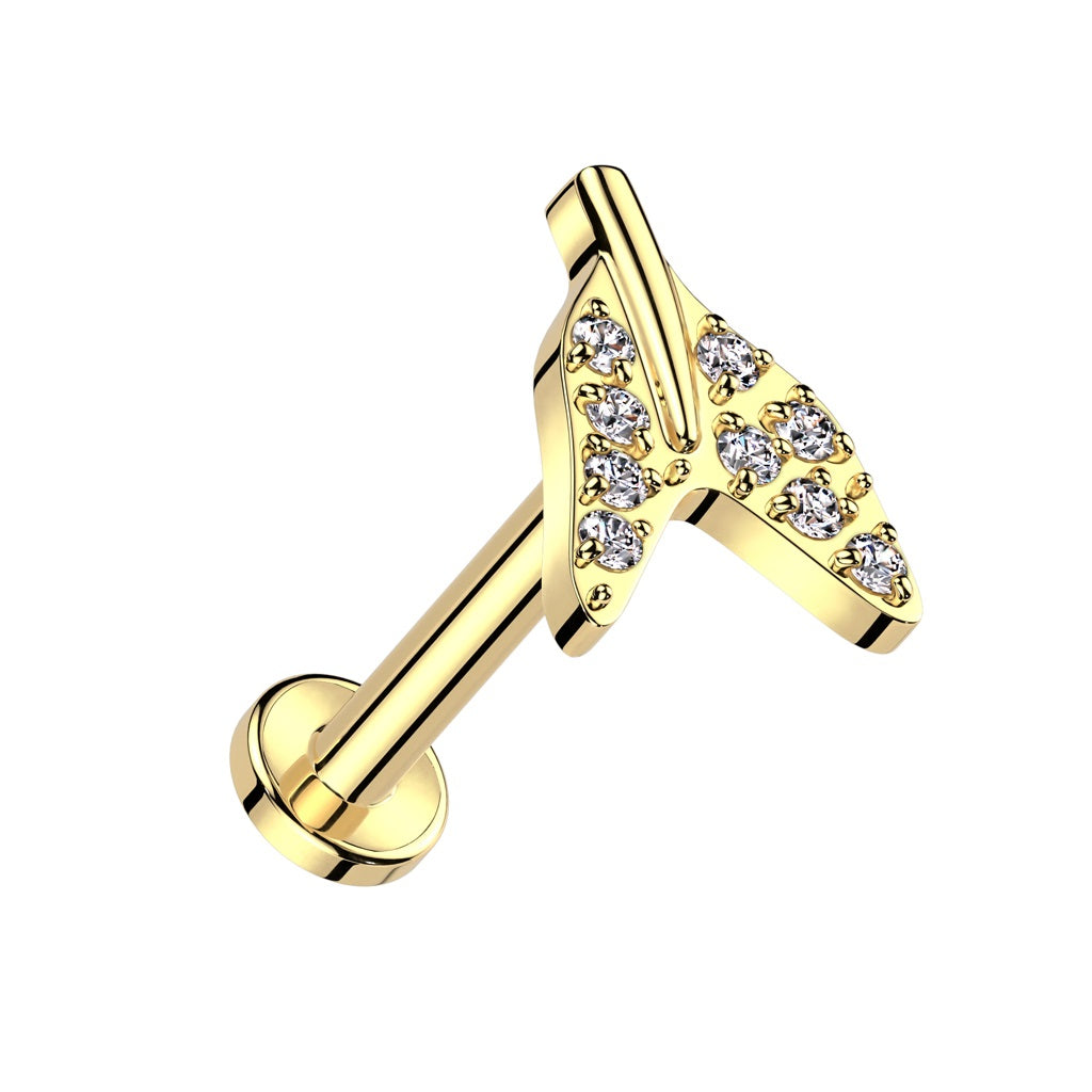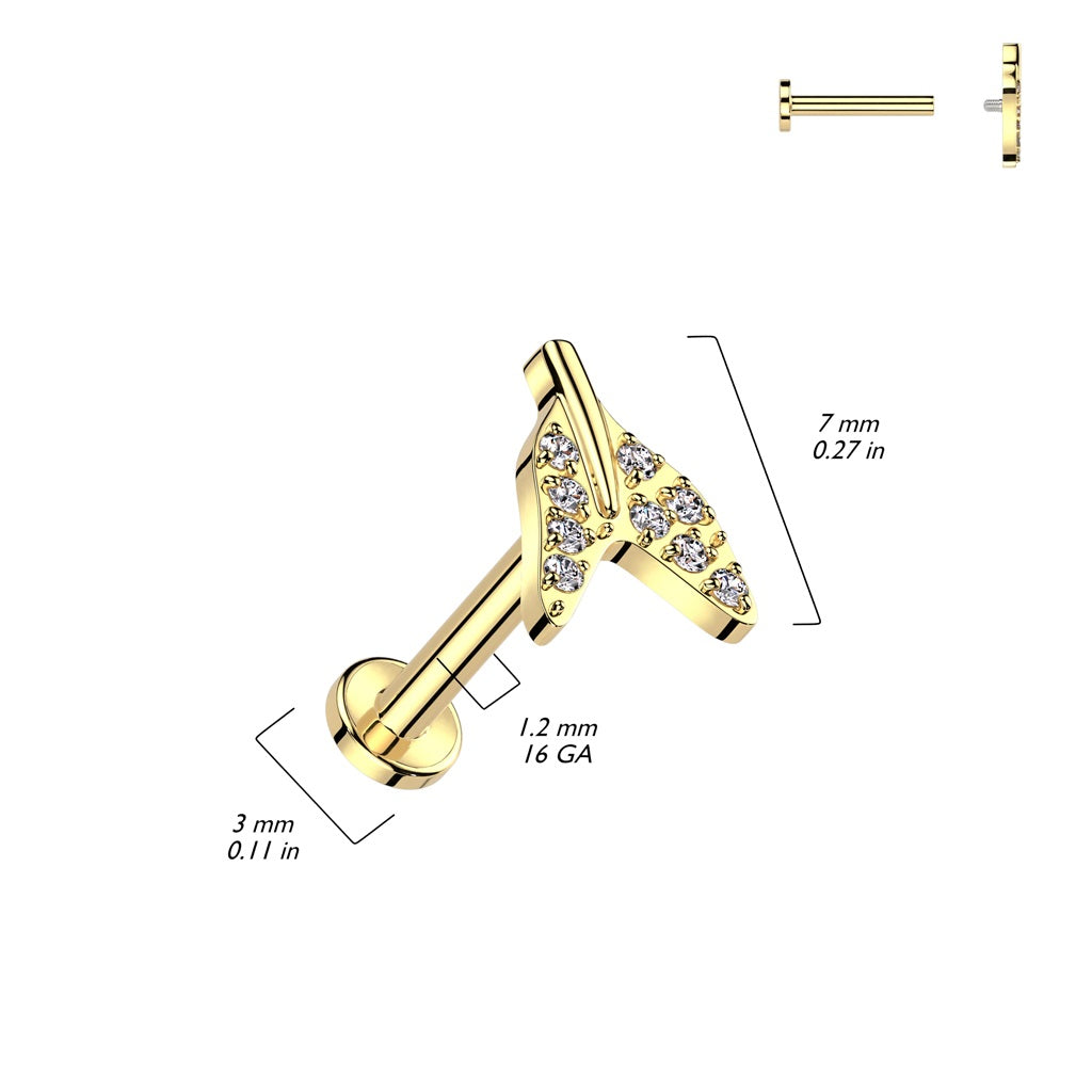 Internally Threaded CZ Crystal Paved Mermaid Tail Flat Back Stud - ASTM F-136 Implant Grade Titanium