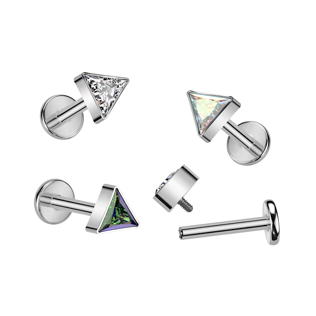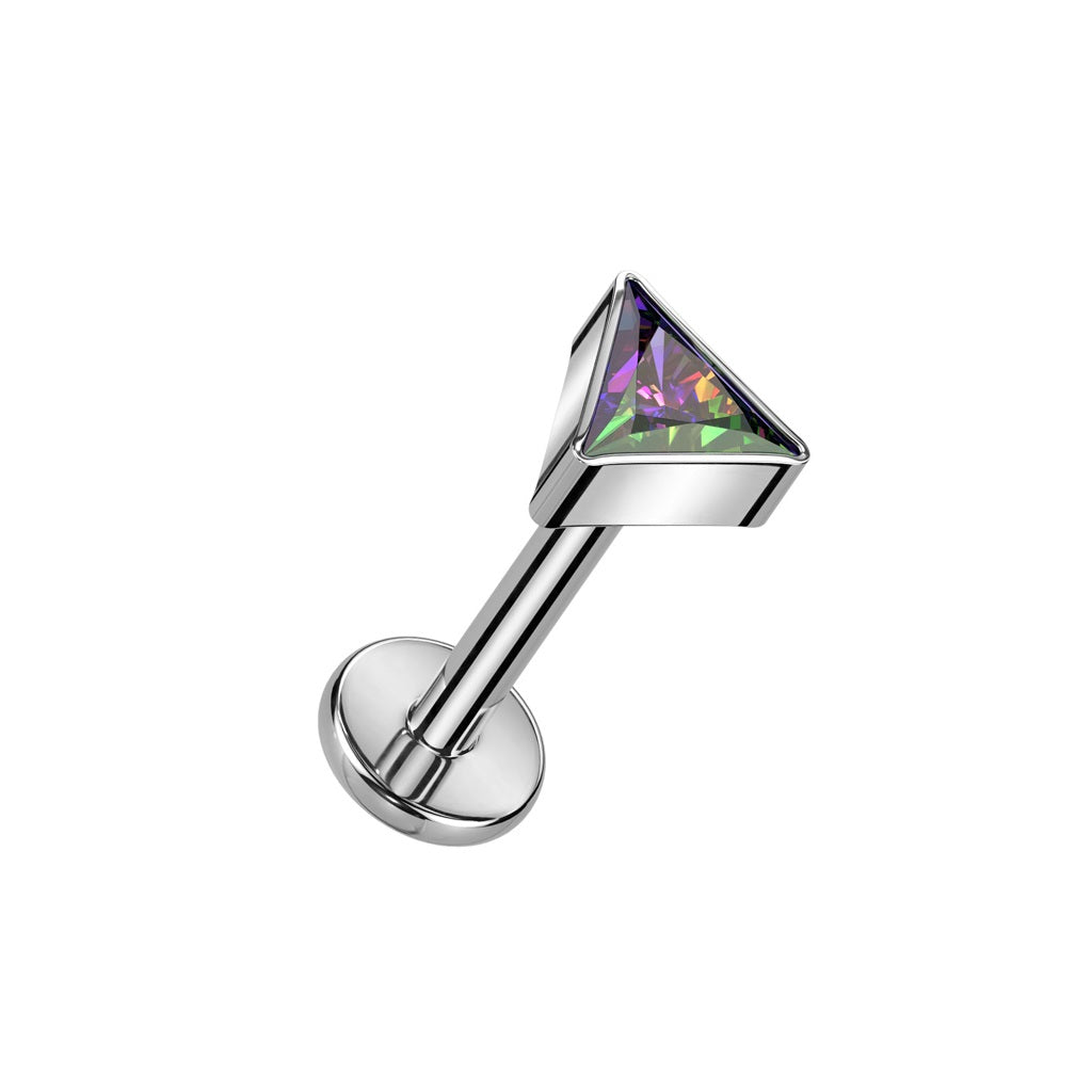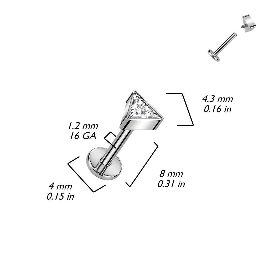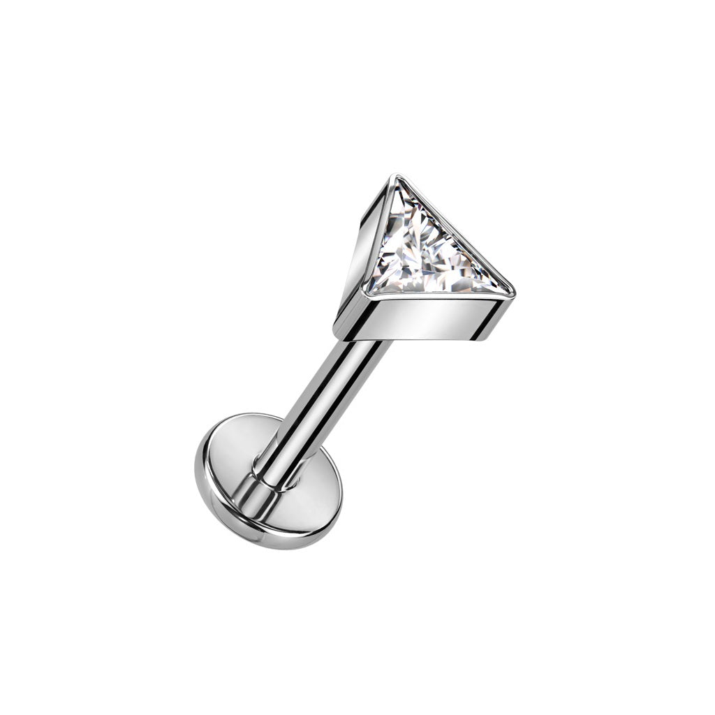 Internally Threaded CZ Crystal Triangle Top Flat Back Stud - F136 Implant Grade Titanium