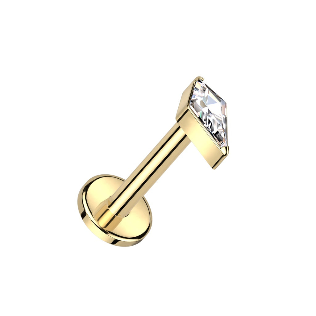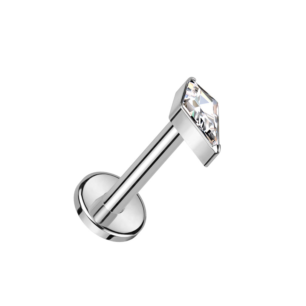 Internally Threaded Diamond Shaped CZ Crystal Flat Back Stud - ASTM F-136 Implant Grade Titanium