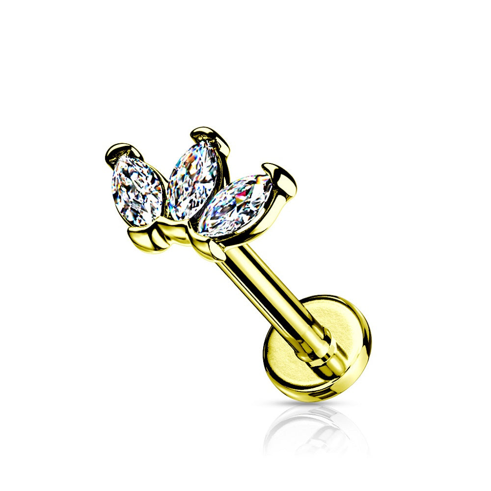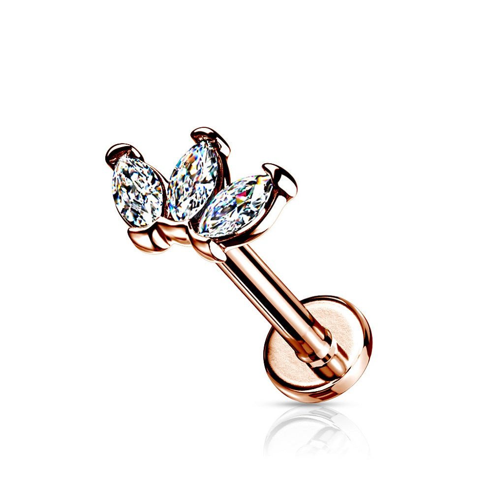 Internally Threaded Triple Marquise CZ Crystal Top Flat Back Lip Cartilage Tragus Stud - 316L Stainless Steel