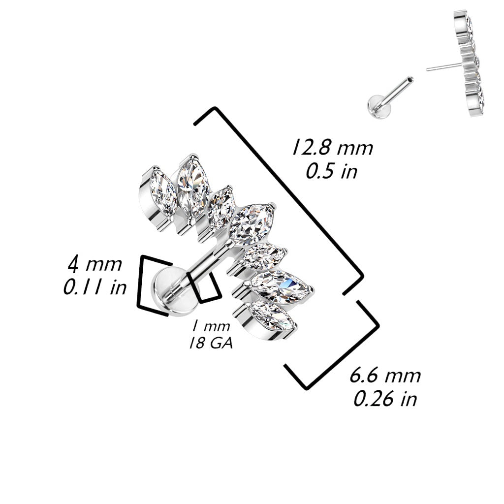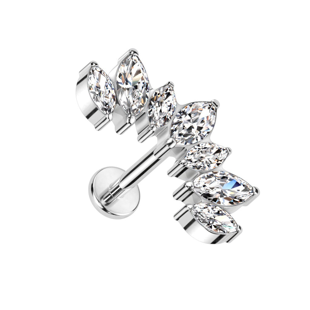 Multi CZ Crystal Marquise Curved Top Threadless Stud - F136 Implant Grade Titanium