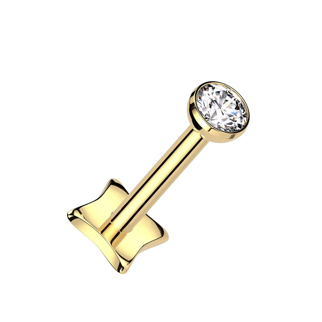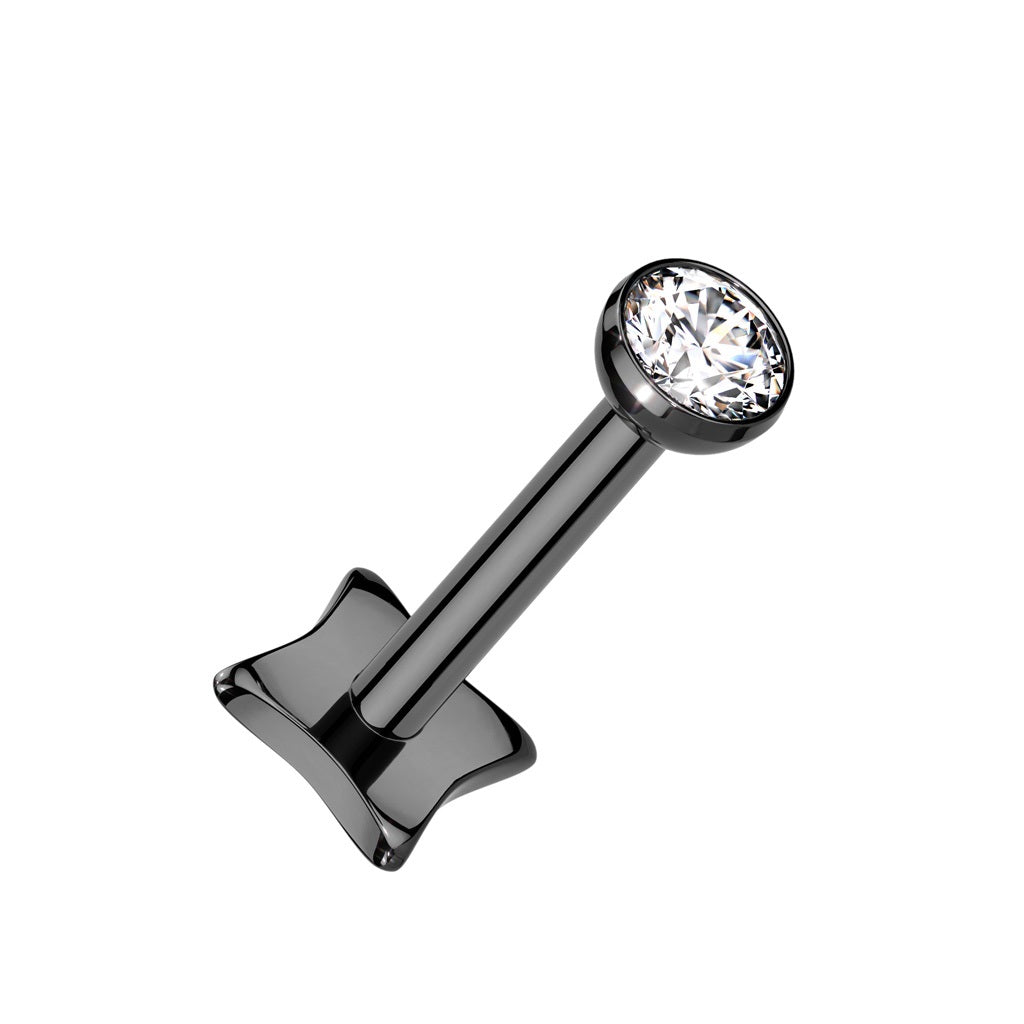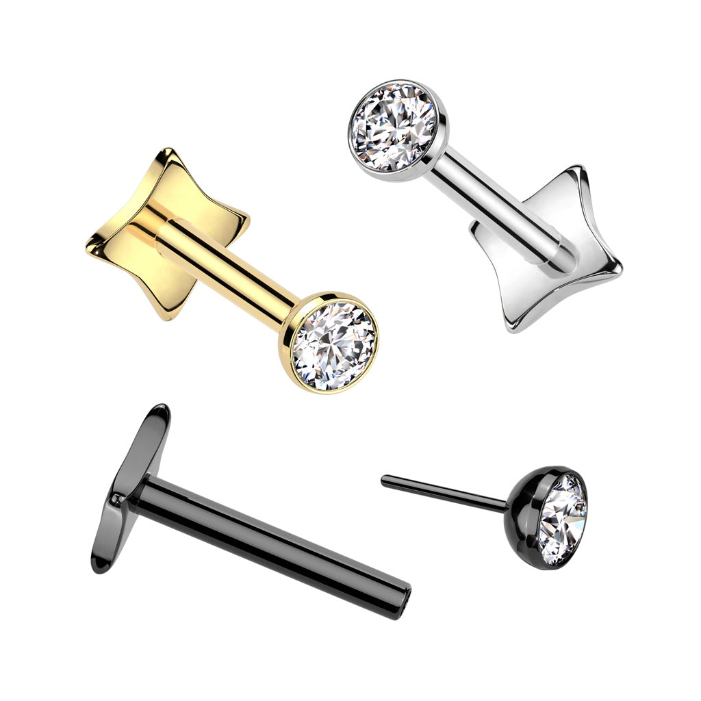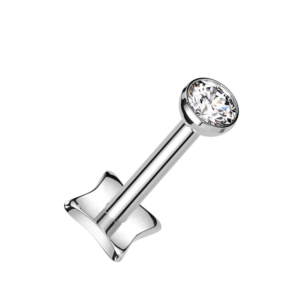 Threadless Push-In Bezel Set CZ Crystal Top Diamond Shaped Base Flat Back Stud - ASTM F-136 Implant Grade Titanium