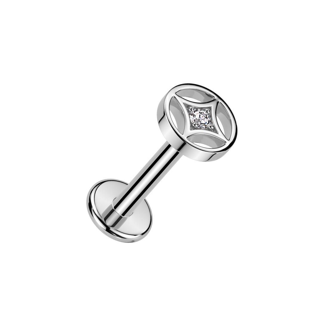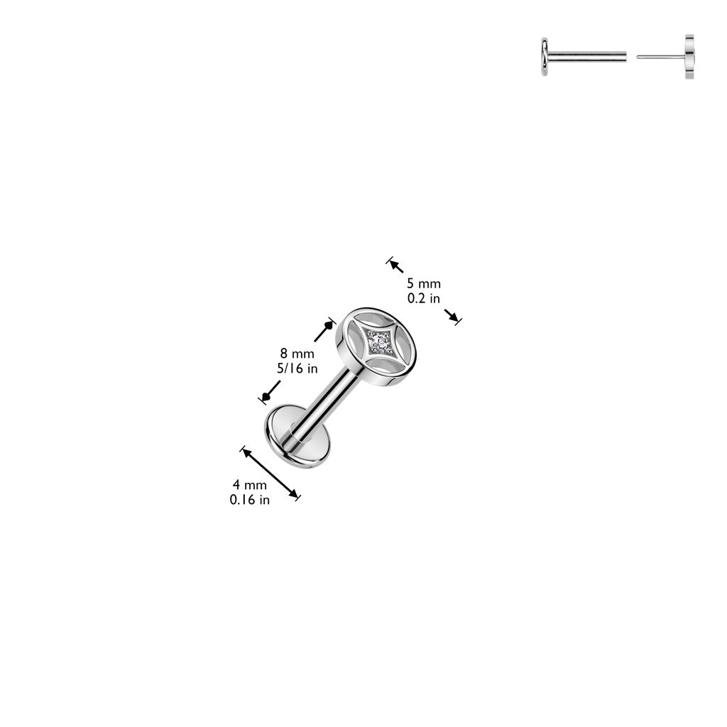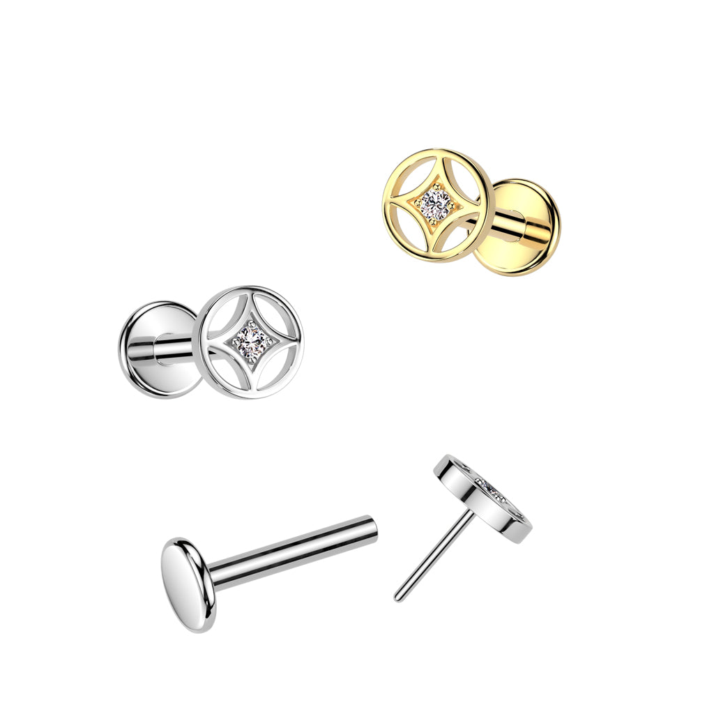 Threadless Push-In CZ Crystal 4 Point Star Round Circle Top Flat Back Stud - 316L Stainless Steel