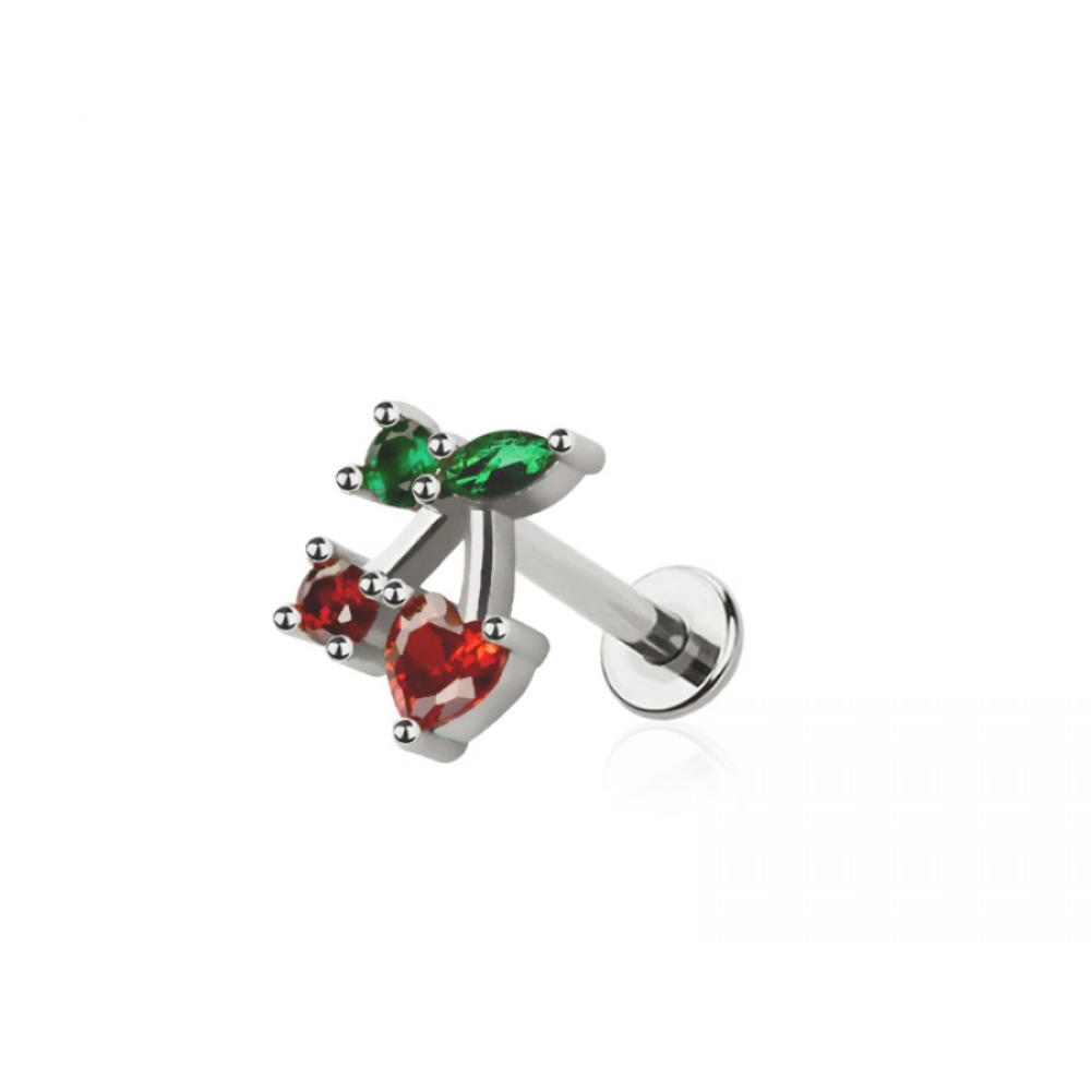Threadless Push-In CZ Crystal Cherry Flat Back Stud - 316L Stainless Steel