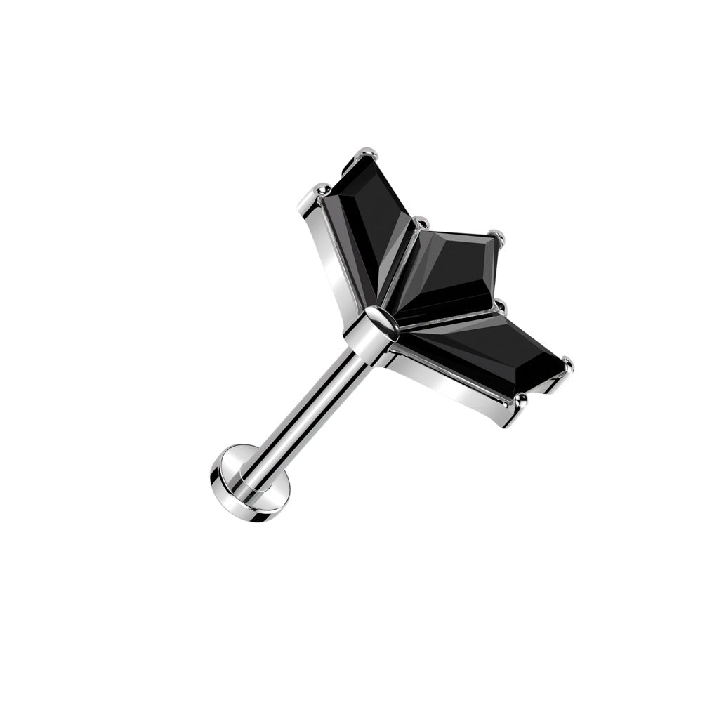 Threadless Push-In CZ Crystal Fan Top Flat Back Stud - ASTM F-136 Implant Grade Titanium