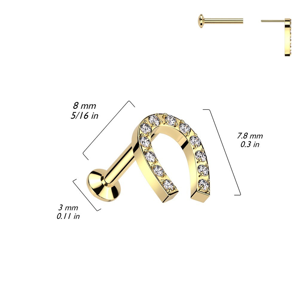 Threadless Push-In CZ Crystal Horseshoe Flat Back Stud - 316L Stainless Steel