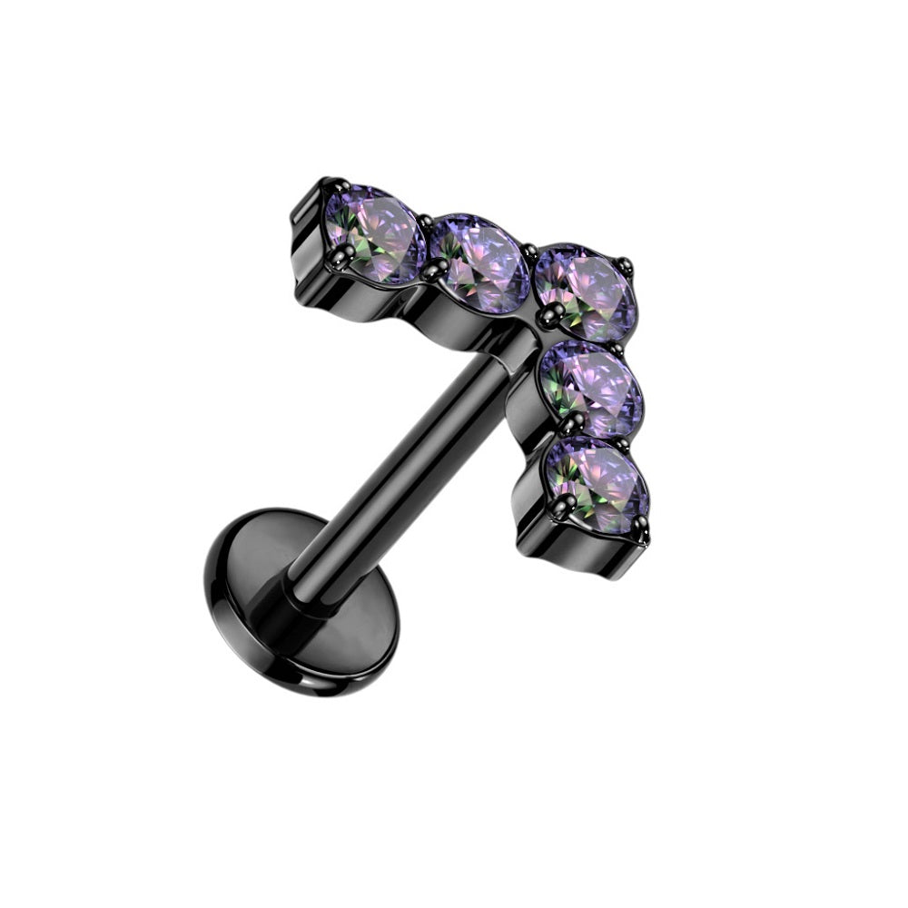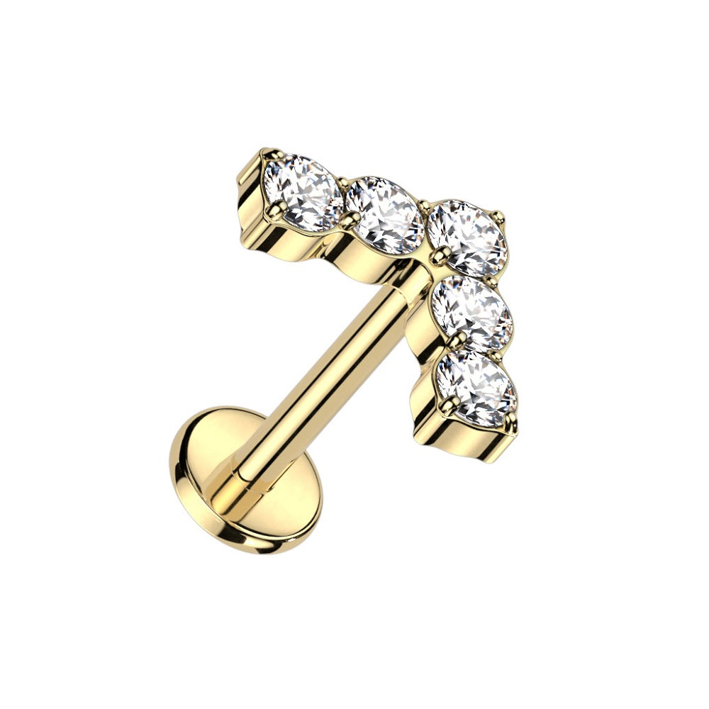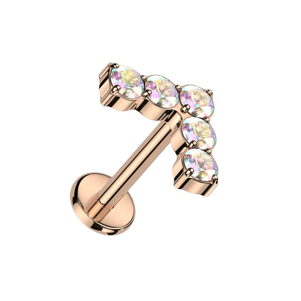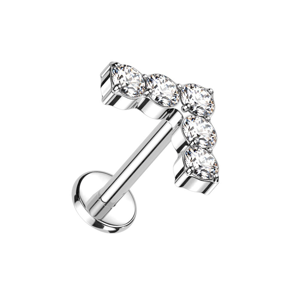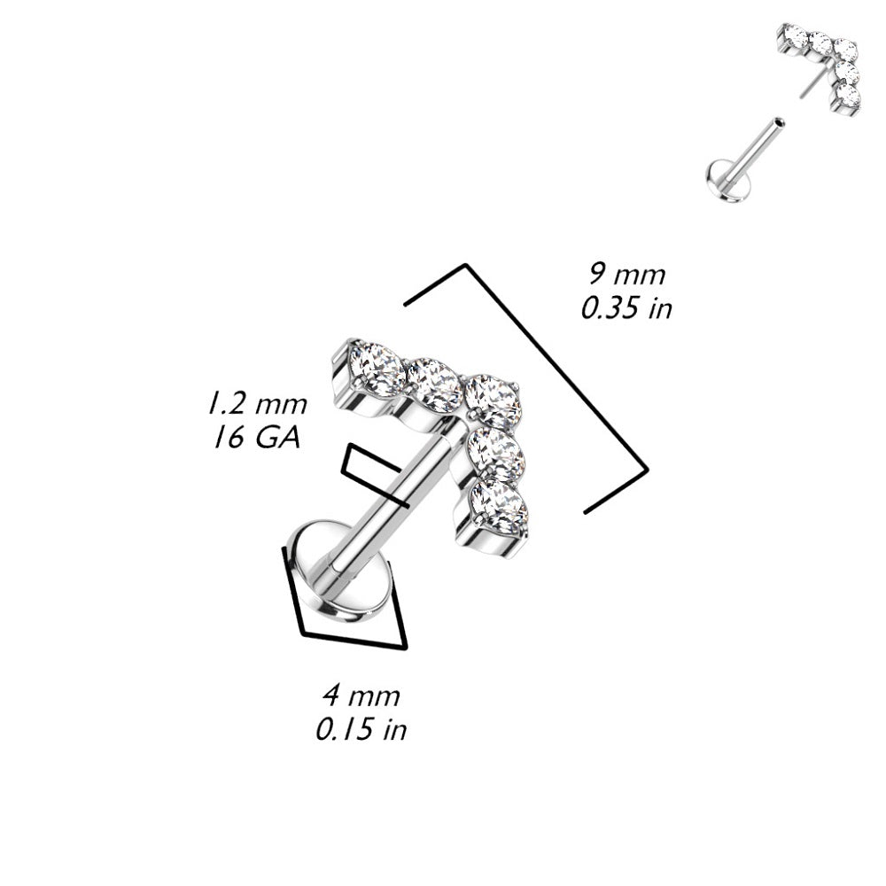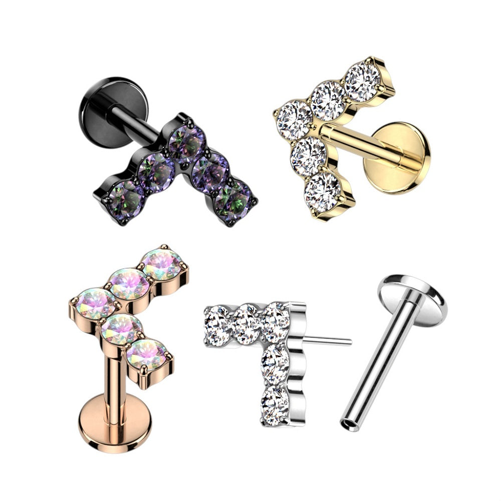 Threadless Push-in CZ Crystal Lined Chevron Shaped Flat Back Stud - ASTM F-136 Implant Grade Titanium