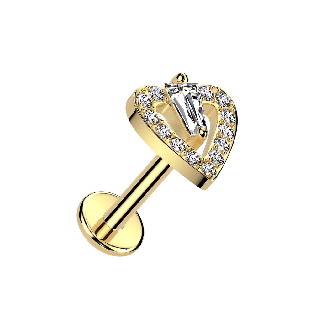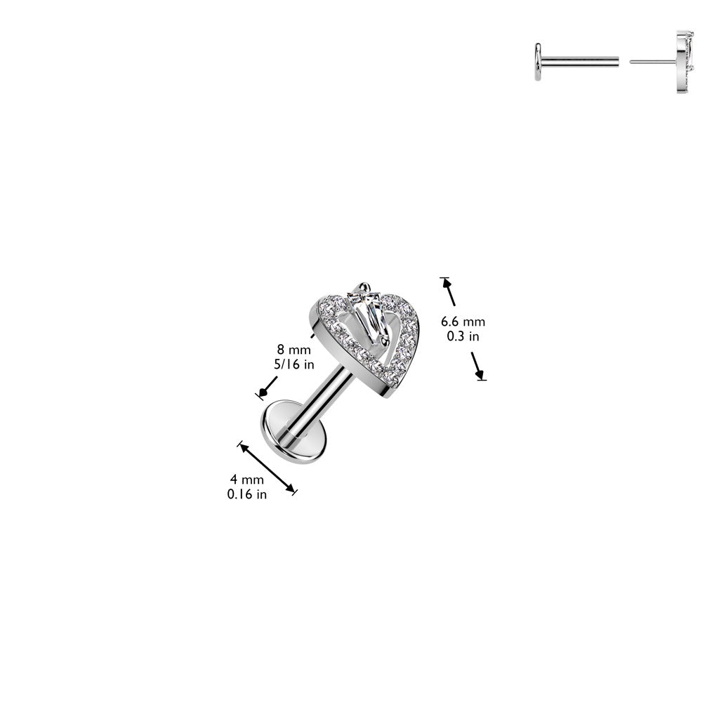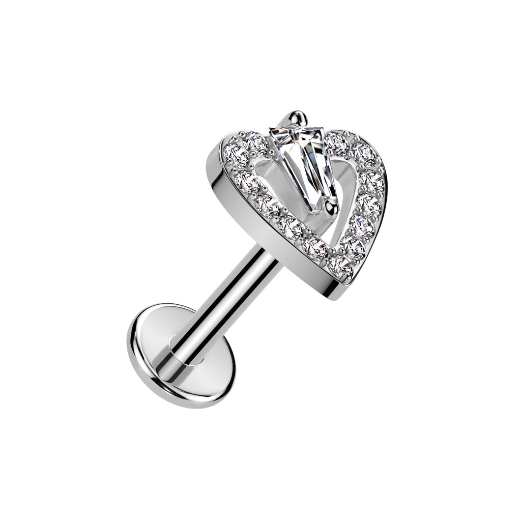 Threadless Push-In CZ Crystal Paved Heart Top Flat Back Stud - 316L Stainless Steel