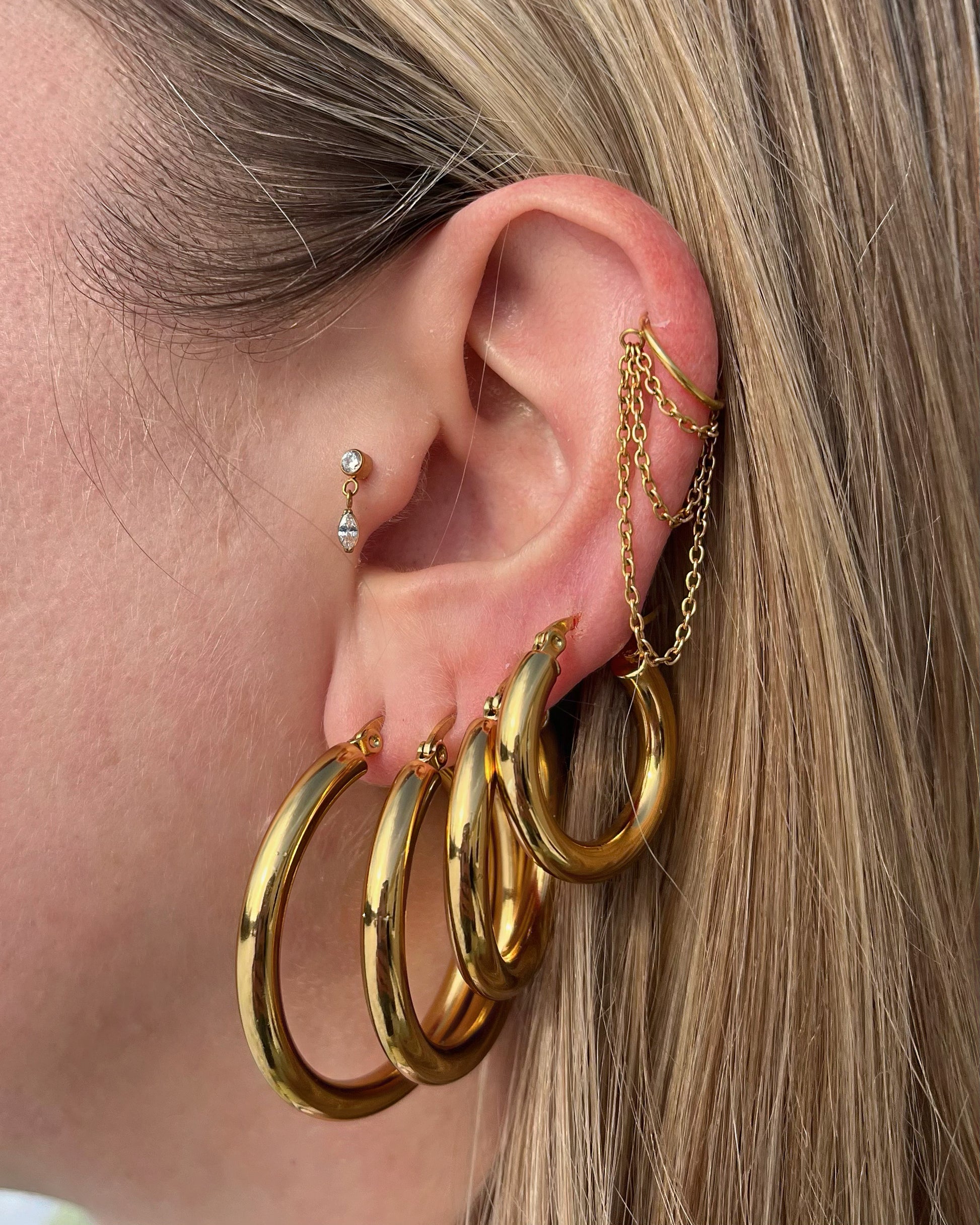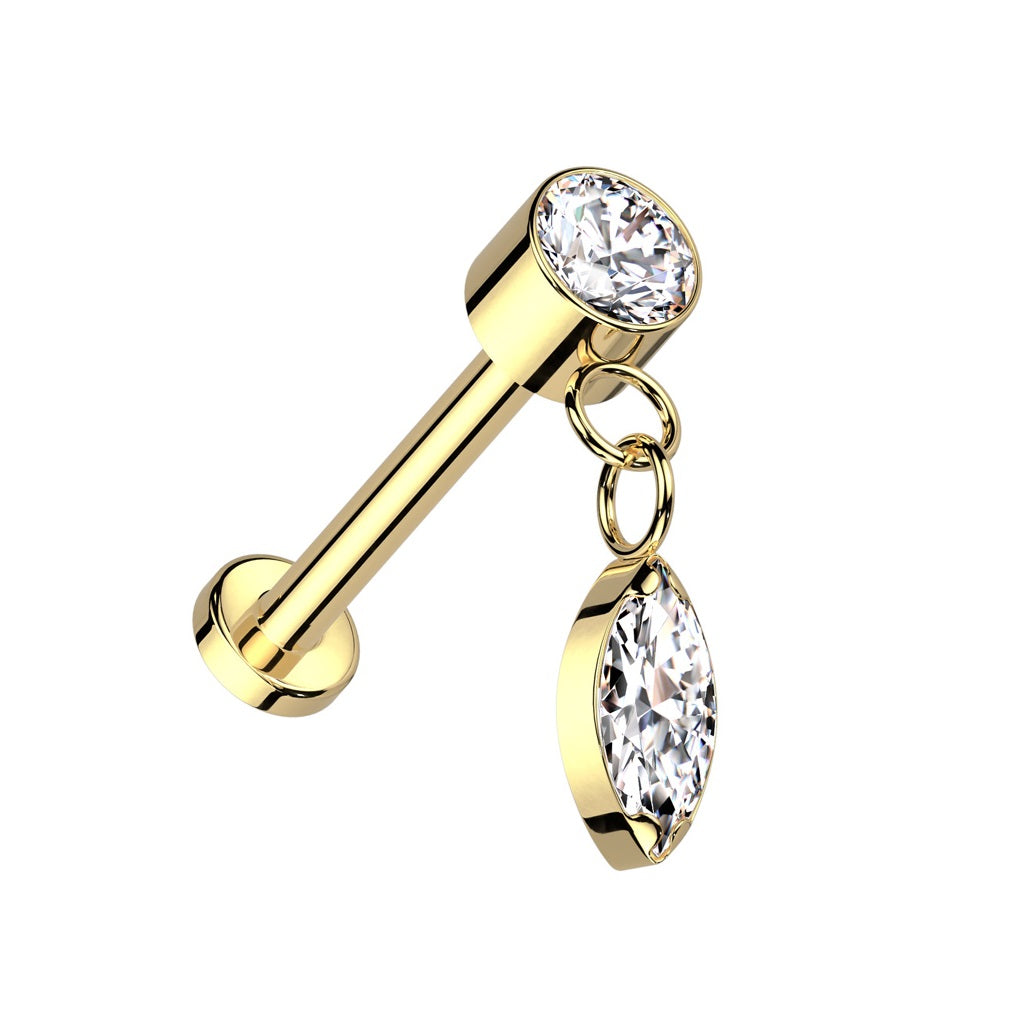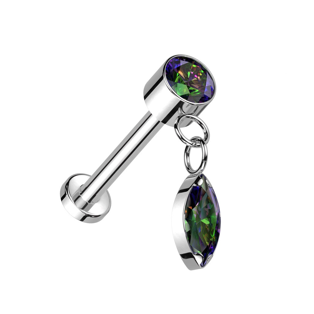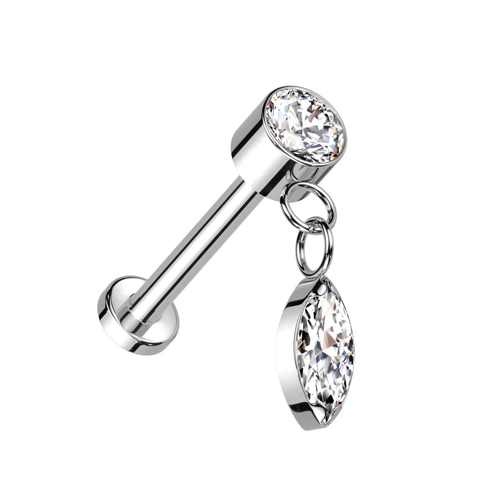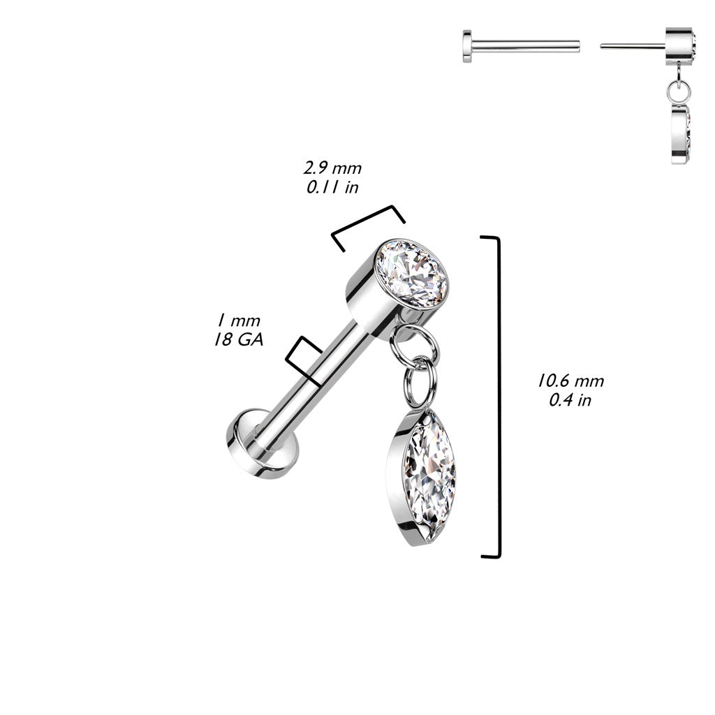 Threadless Push-In CZ Crystal with Dangling Marquise Flat Back Stud - ASTM F-136 Implant Grade Titanium