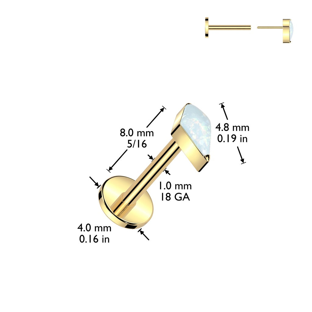 Threadless Push-In Diamond Shaped Synthetic Opal Flat Back Stud - ASTM F-136 Implant Grade Titanium