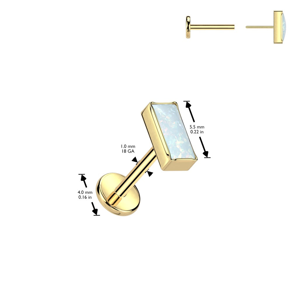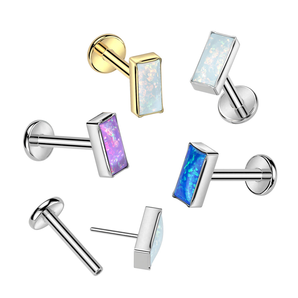 Threadless Push-In Rectangular Synthetic Opal Threadless Push-In Flat Back Stud - ASTM F-136 Implant Grade Titanium