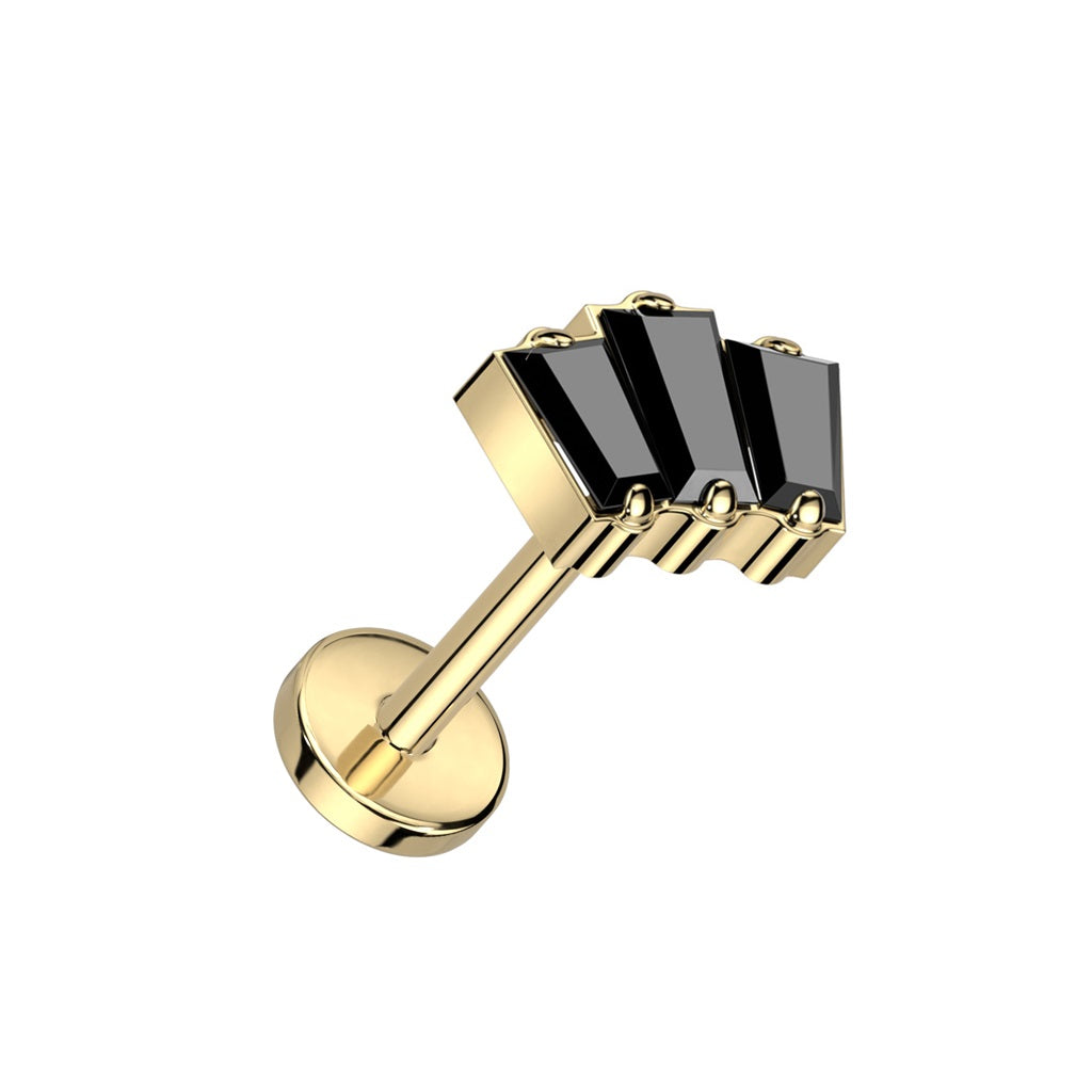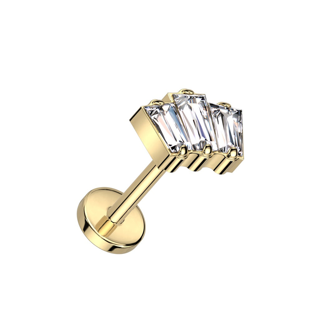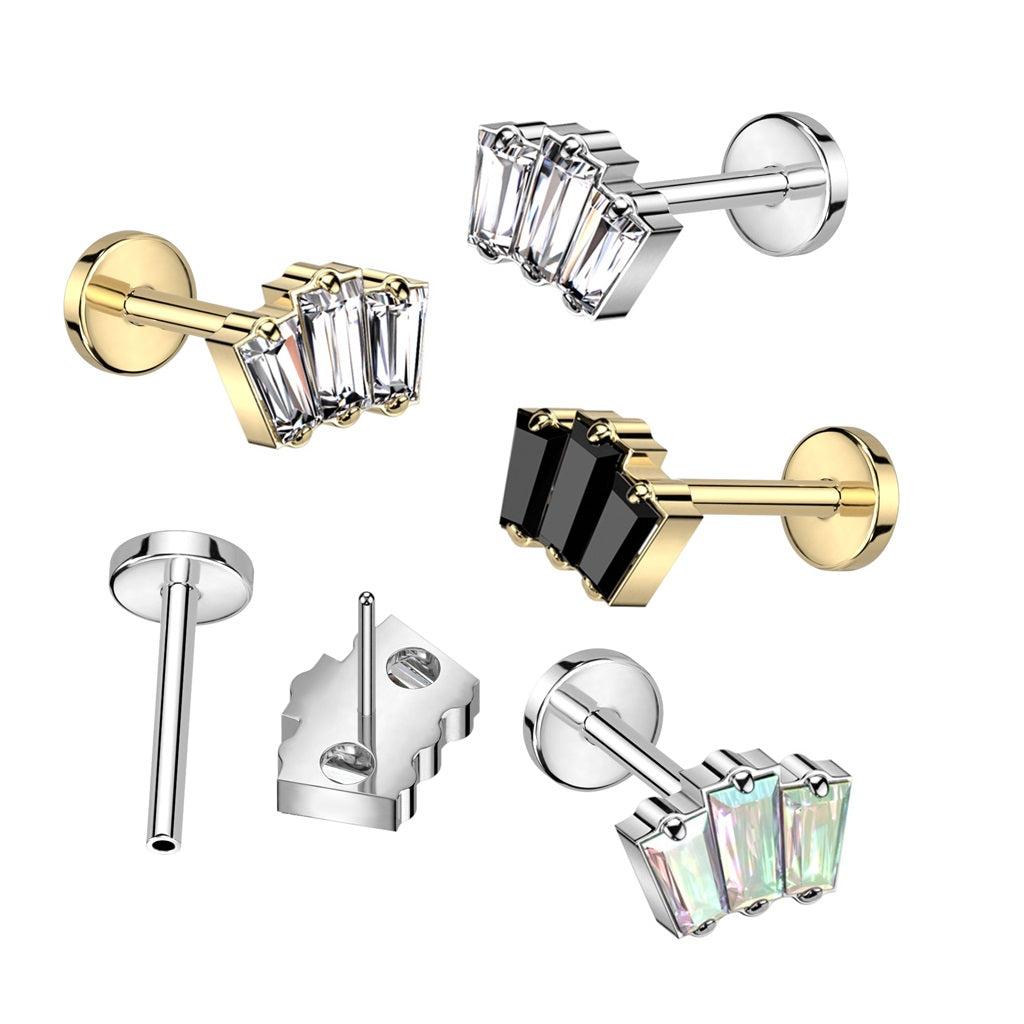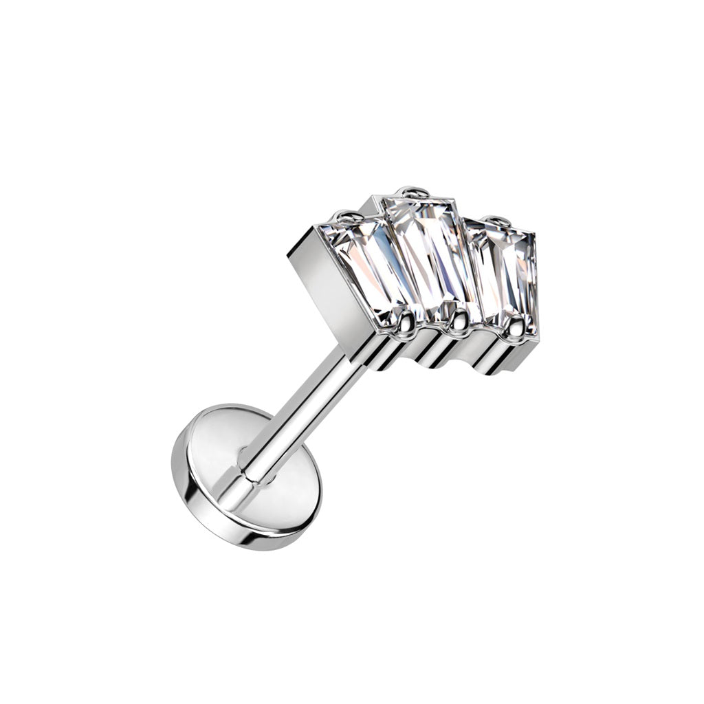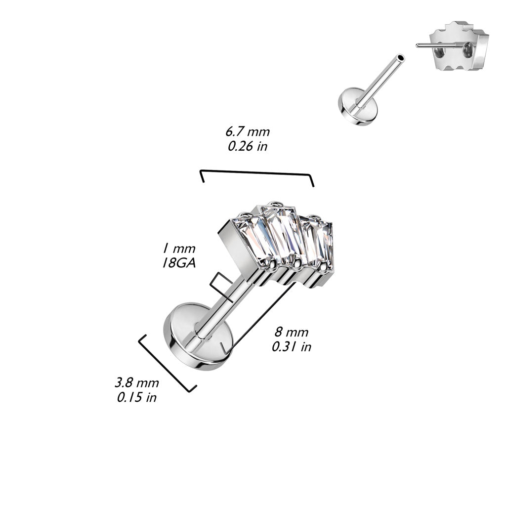 Triple CZ Crystal Baguette Threadless Push-In Labret Stud - F136 Implant Grade Titanium