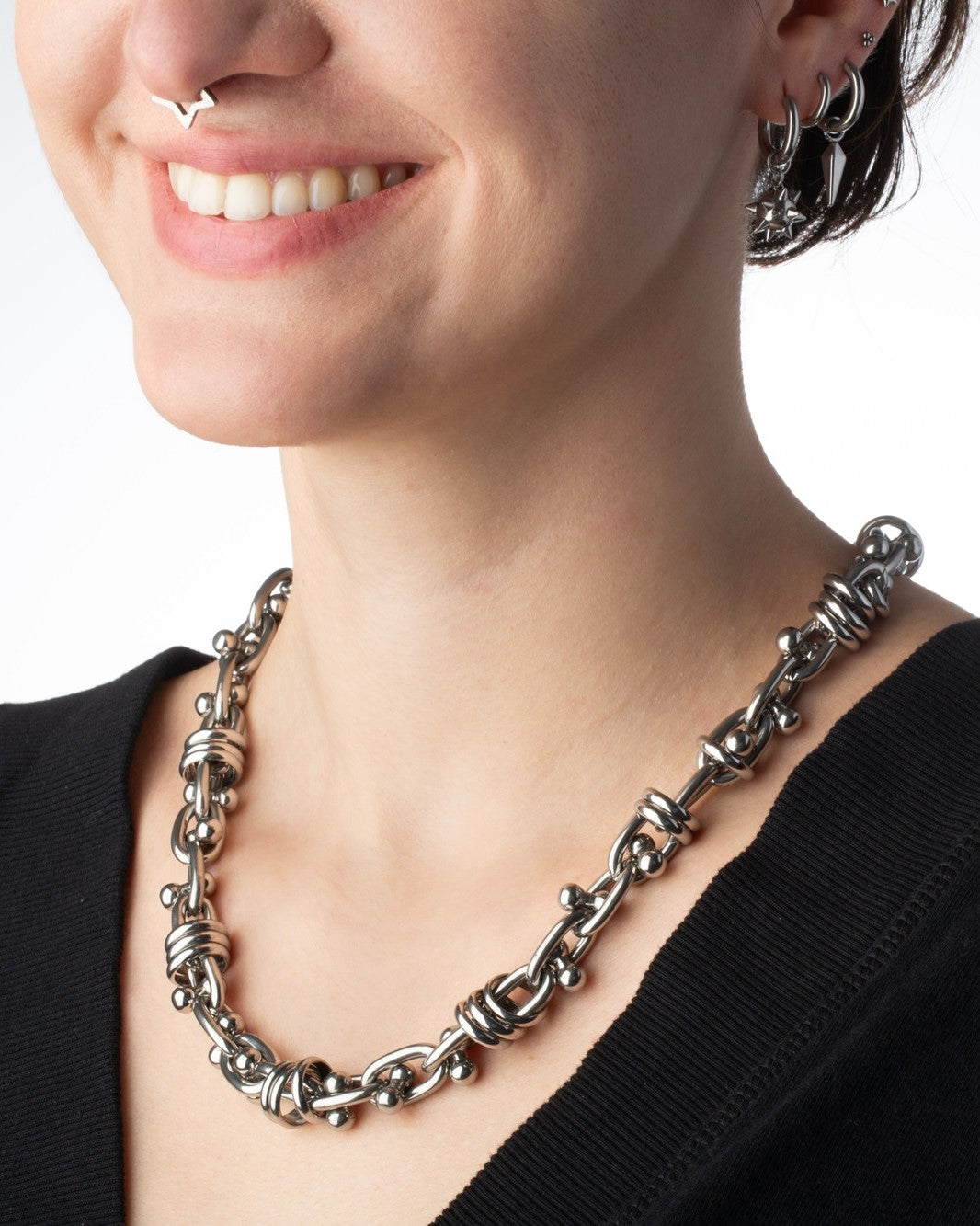 Barbell Chain Link Necklace - 316L Stainless Steel
