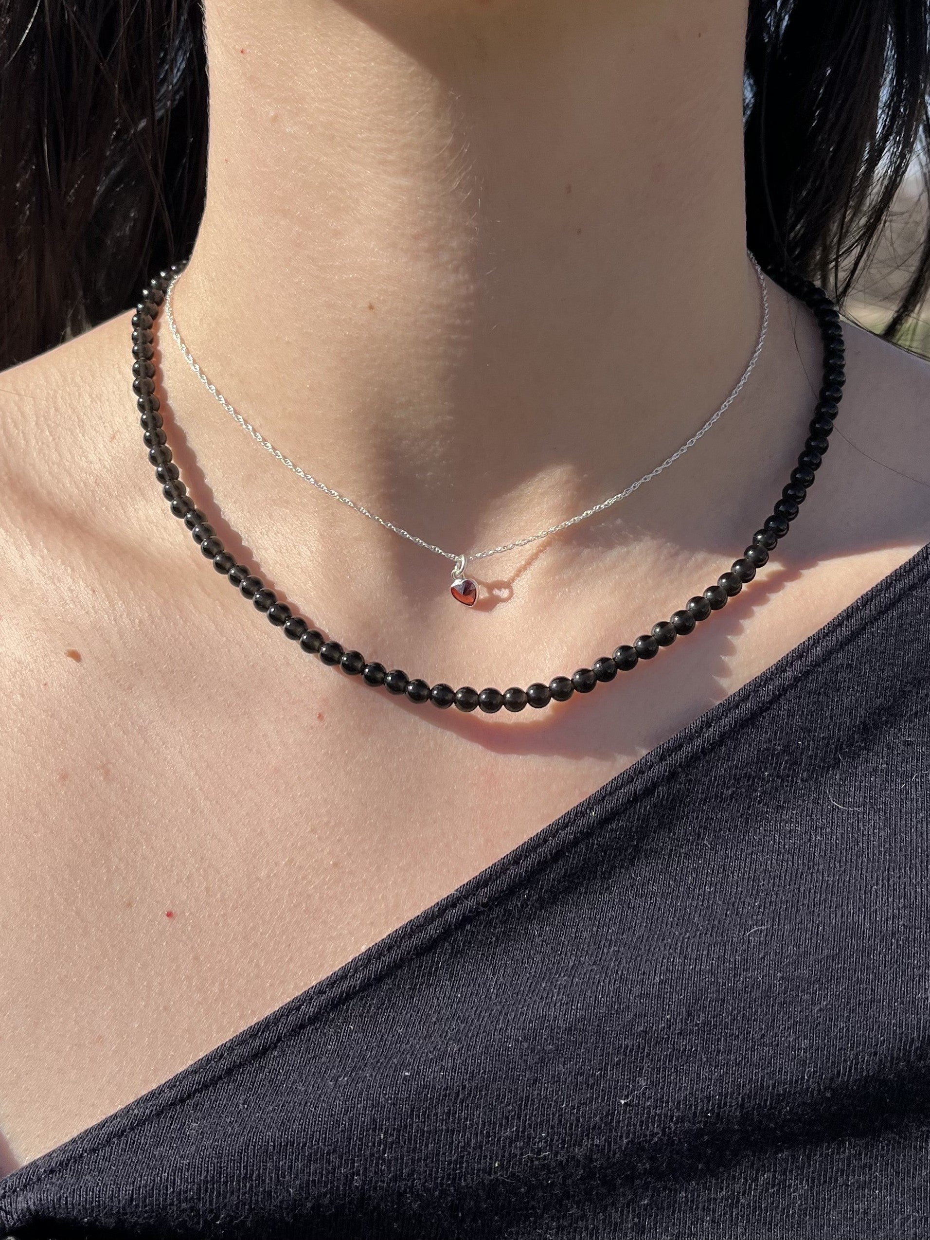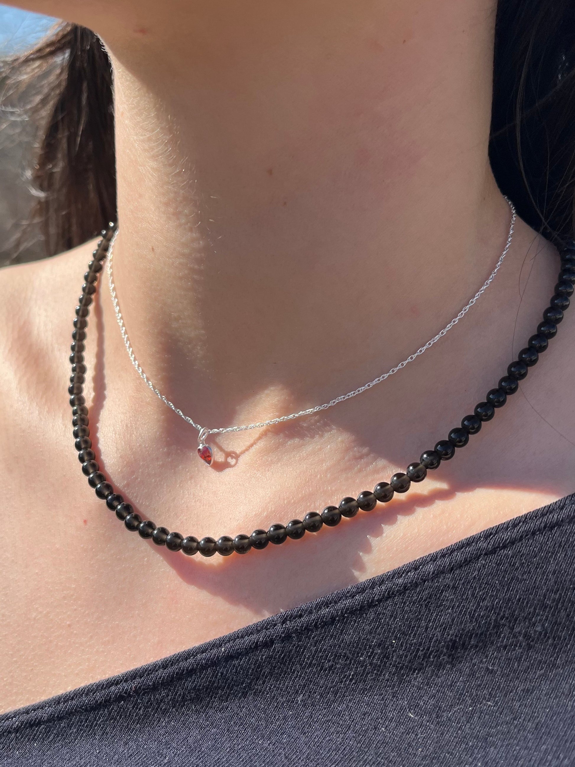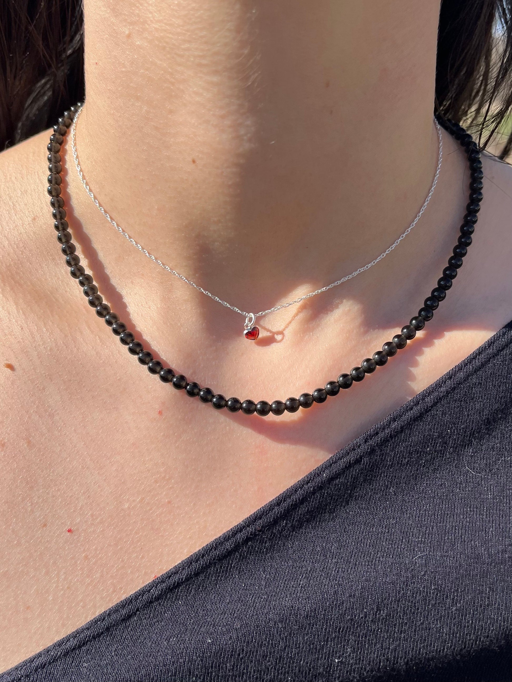 Red CZ Crystal Heart Choker Necklace - 925 Sterling Silver