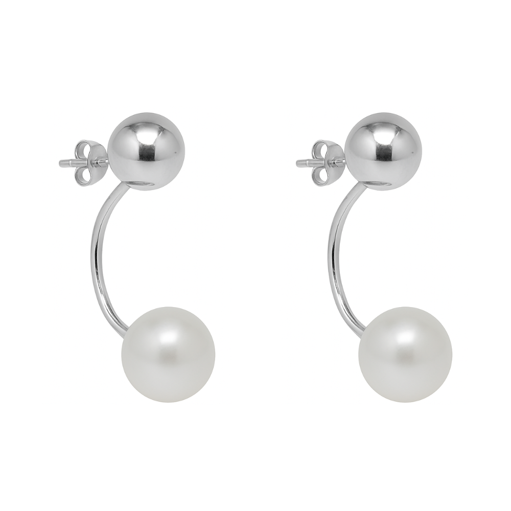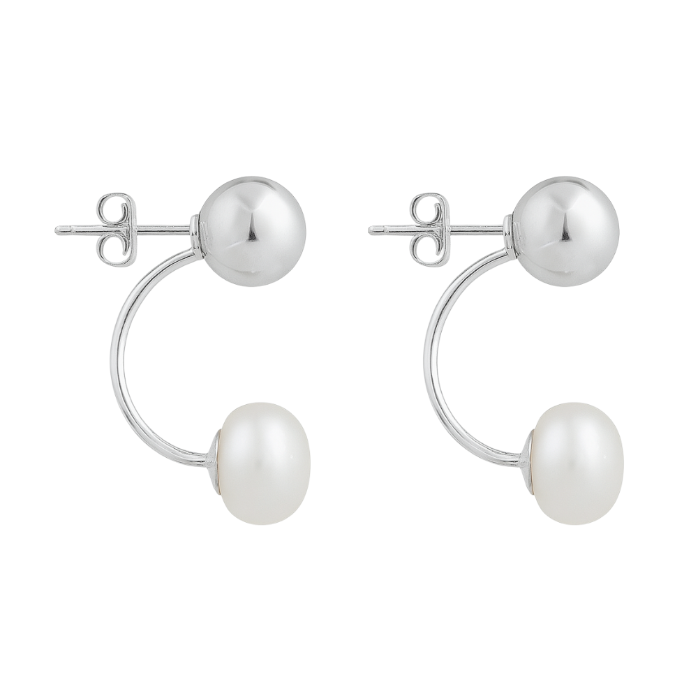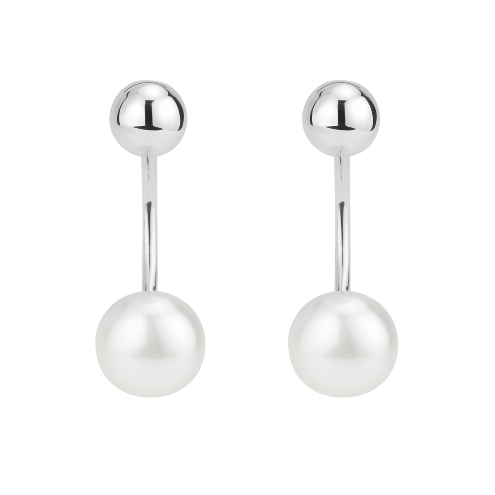 925 Sterling Silver Double Polished Silver Ball and Simulated Pearl Earring Jackets, Sold as a Pair
