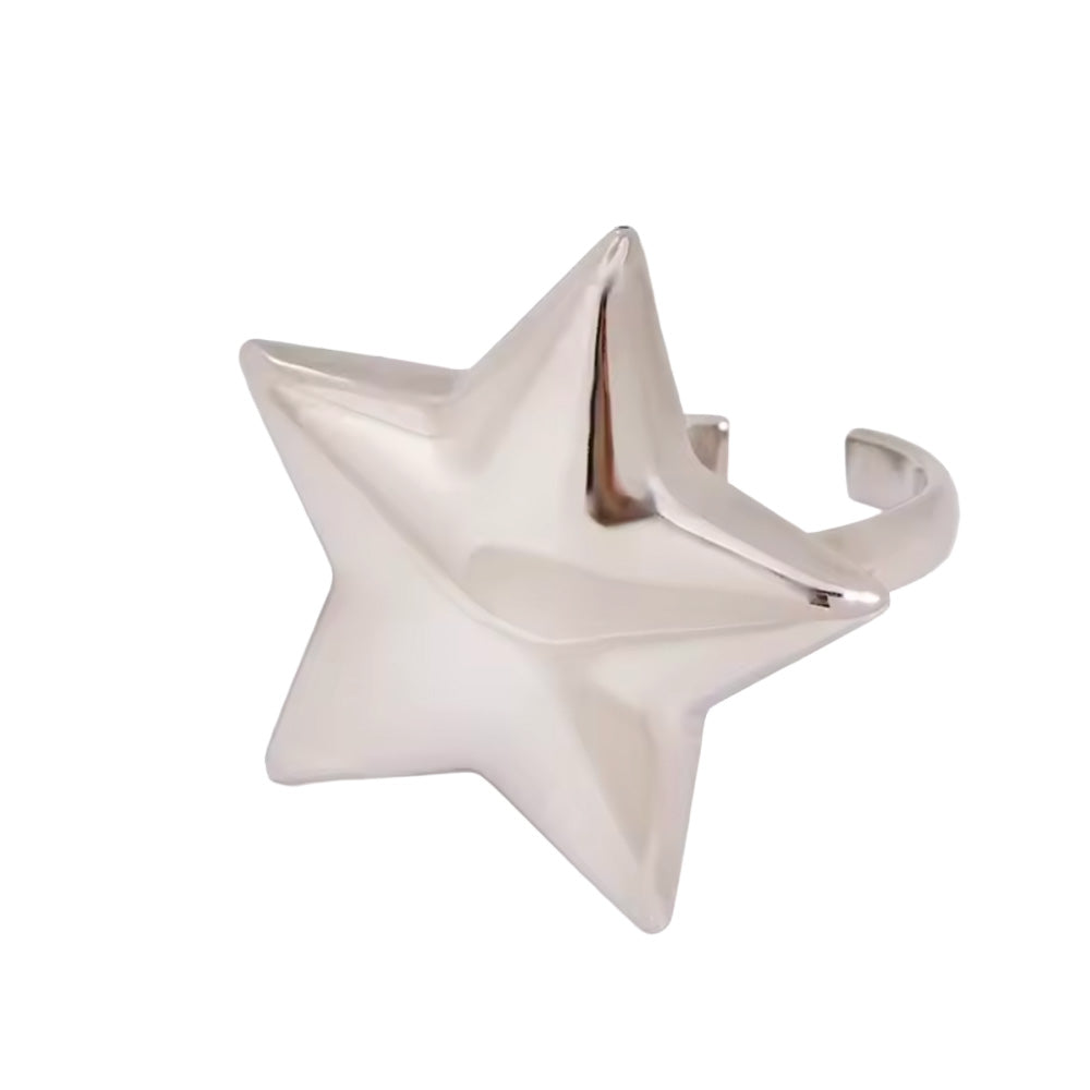 Adjustable Chunky Star Ring - Stainless Steel