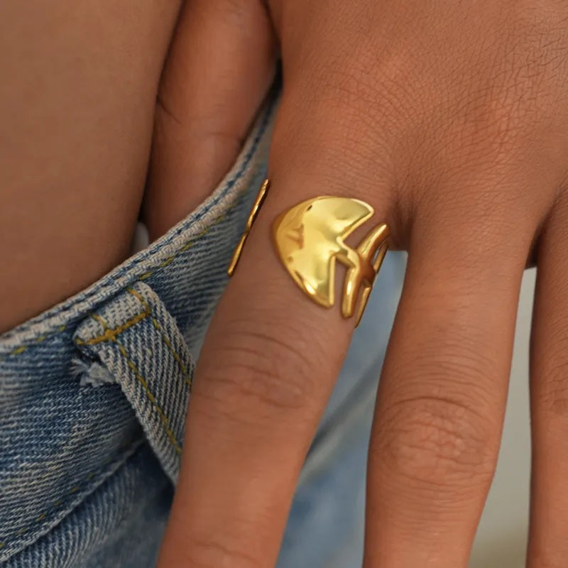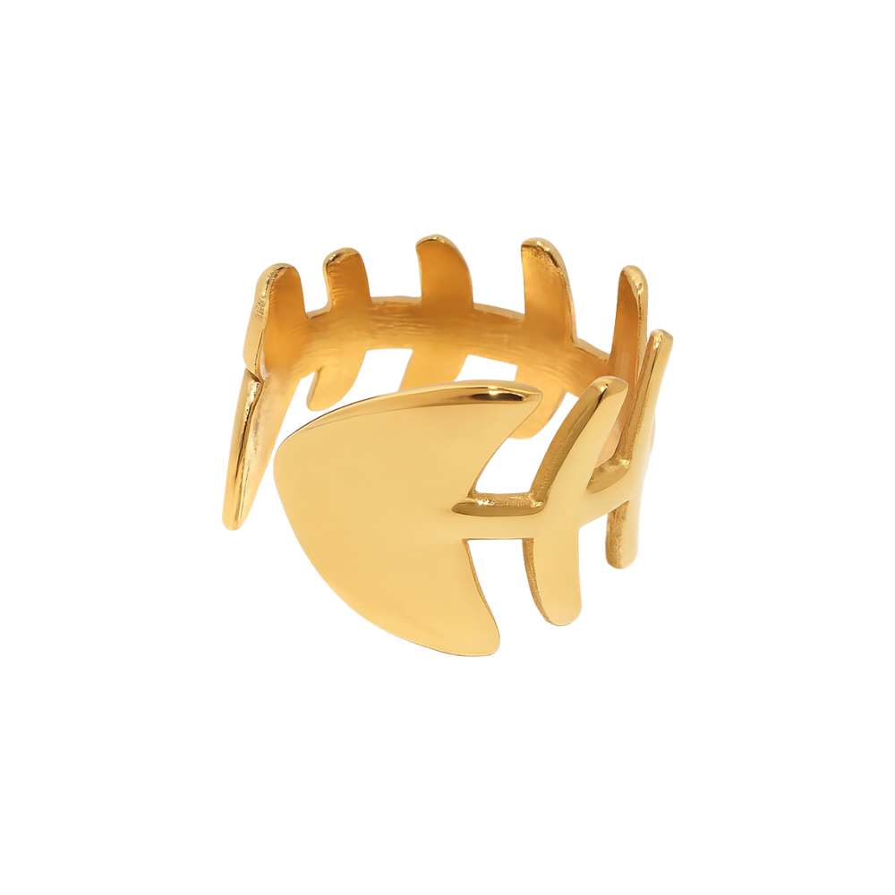 Adjustable Fishbone Ring - 18k Gold Plated Stainless Steel