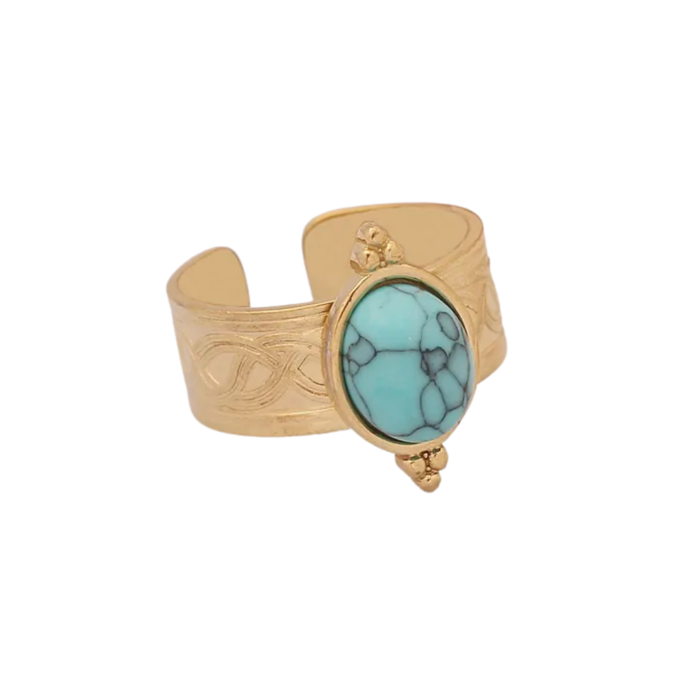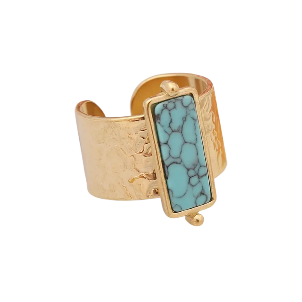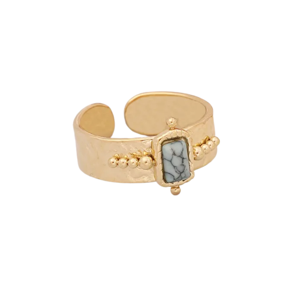 Adjustable Stone Ring - 18k Gold Plated Stainless Steel