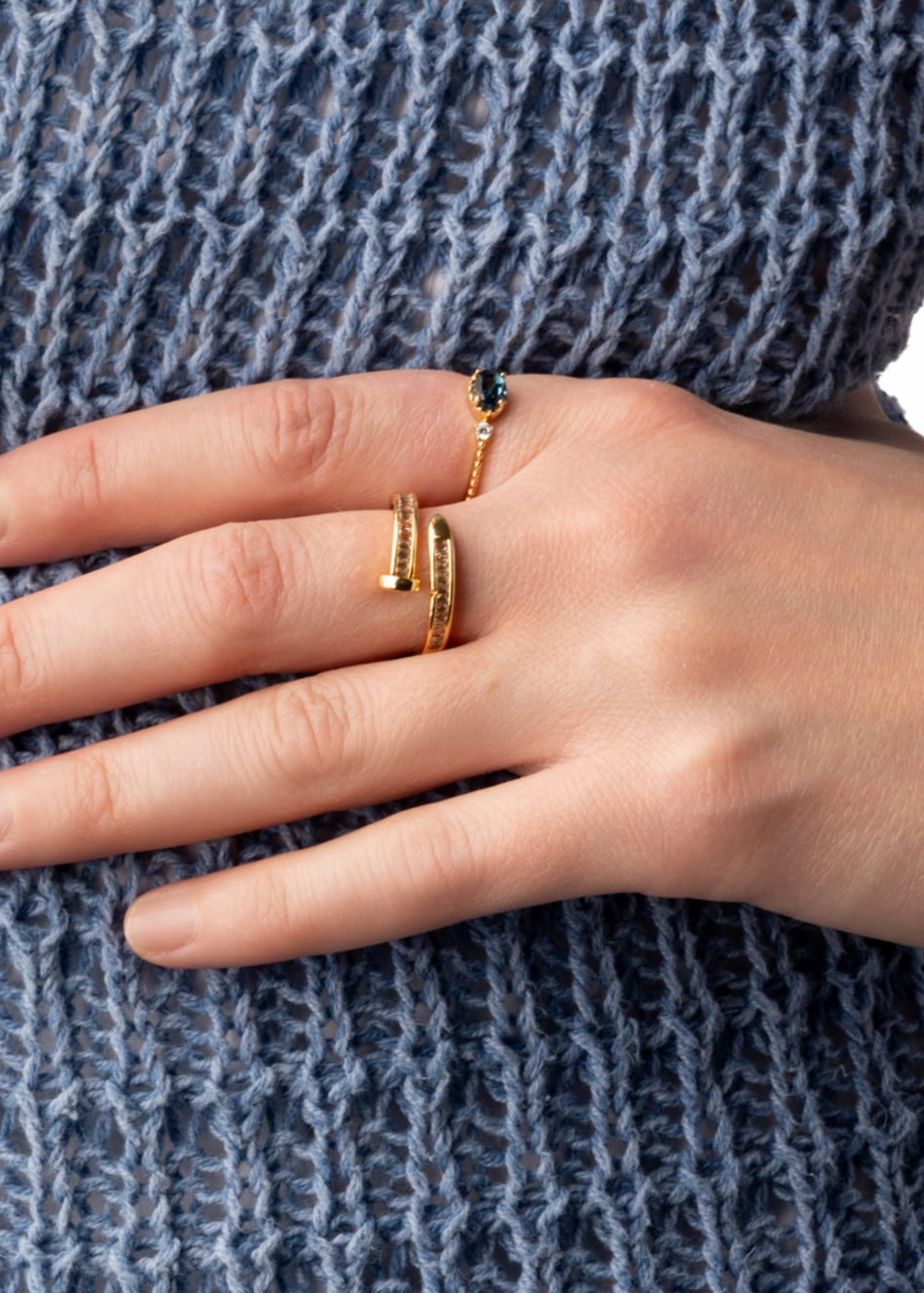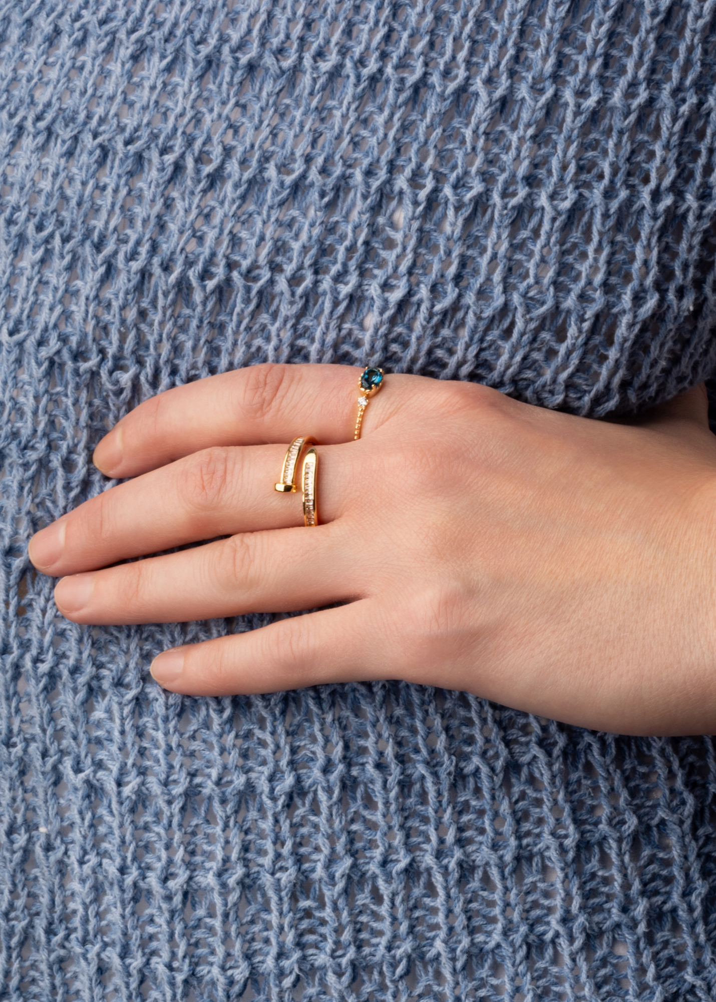 Blue Zircon Gem Ring - Gold Plated 925 Sterling Silver