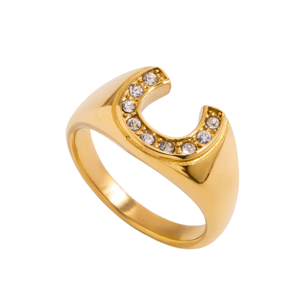 Crystal Horseshoe Ring - Gold Plated 316 Stainless Steel