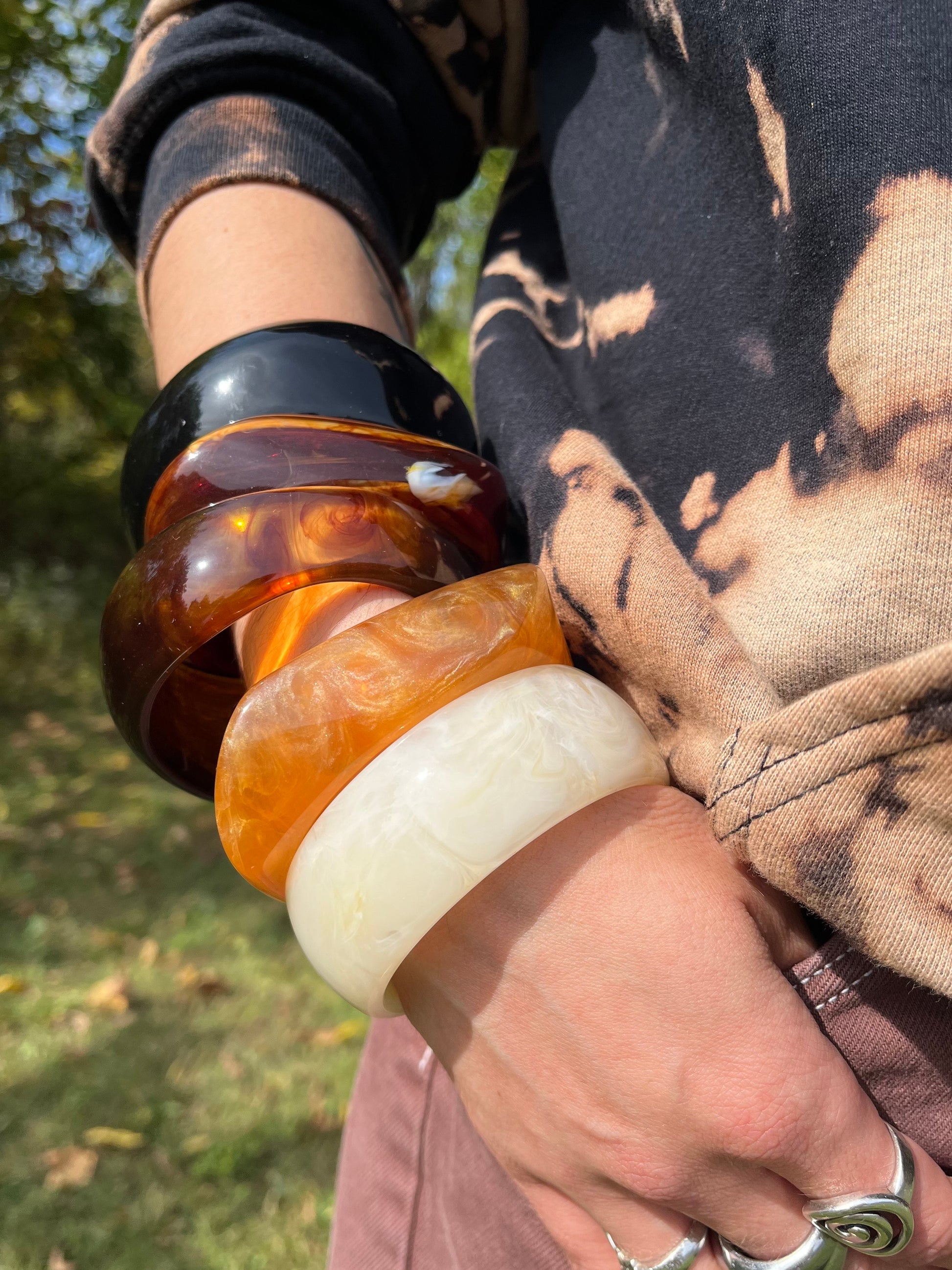 Dark Brown Swirl Resin Chunky Irregular Bangle Bracelet