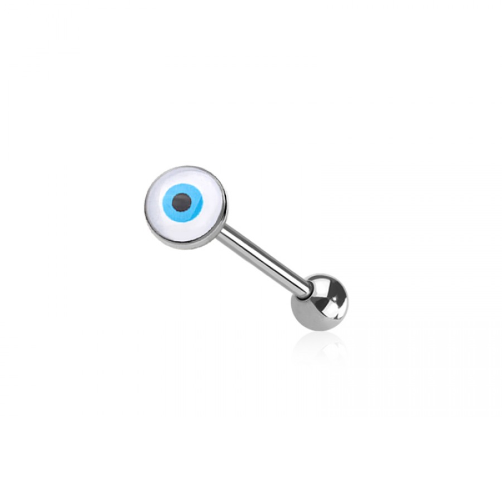 Epoxy Acrylic Evil Eye Tongue Barbell - 316L Stainless Steel