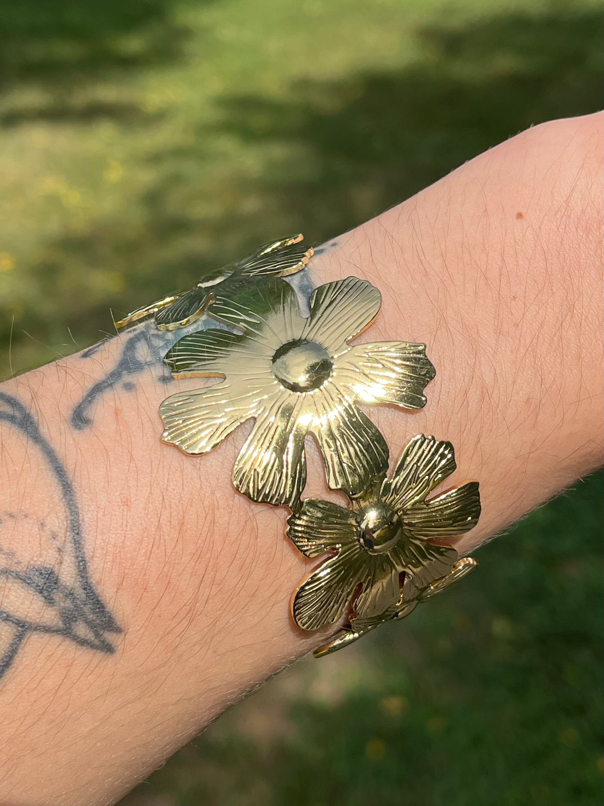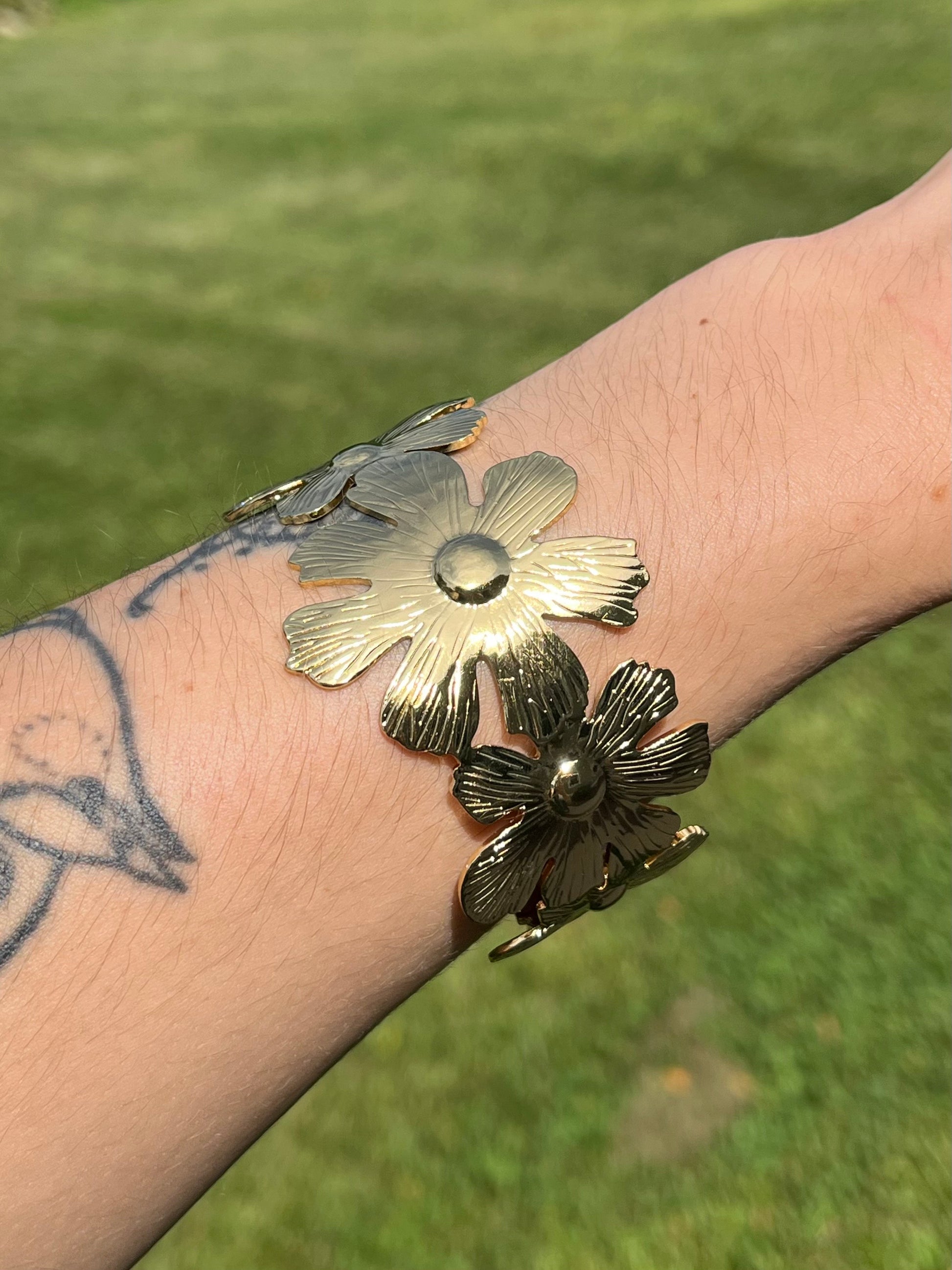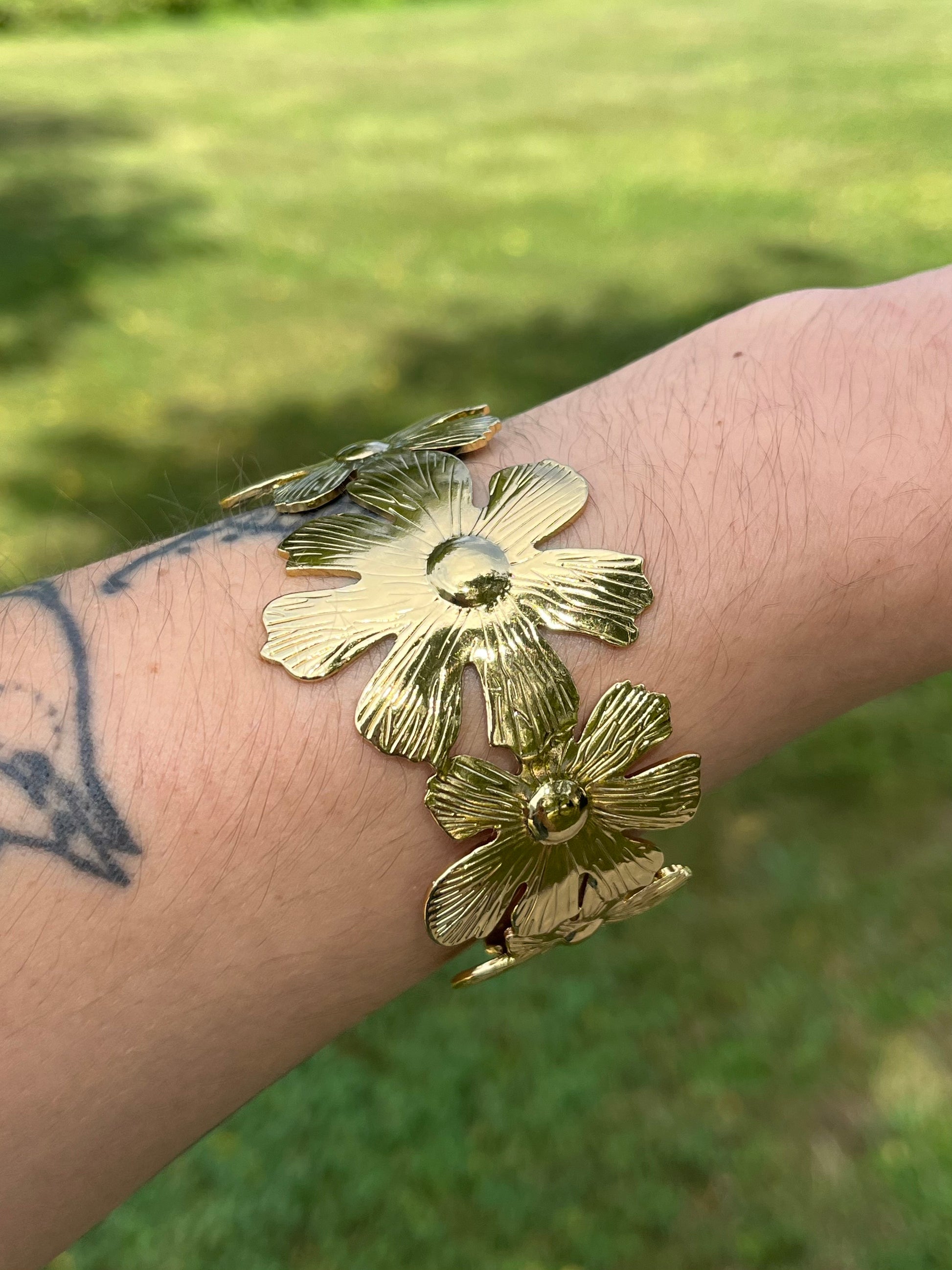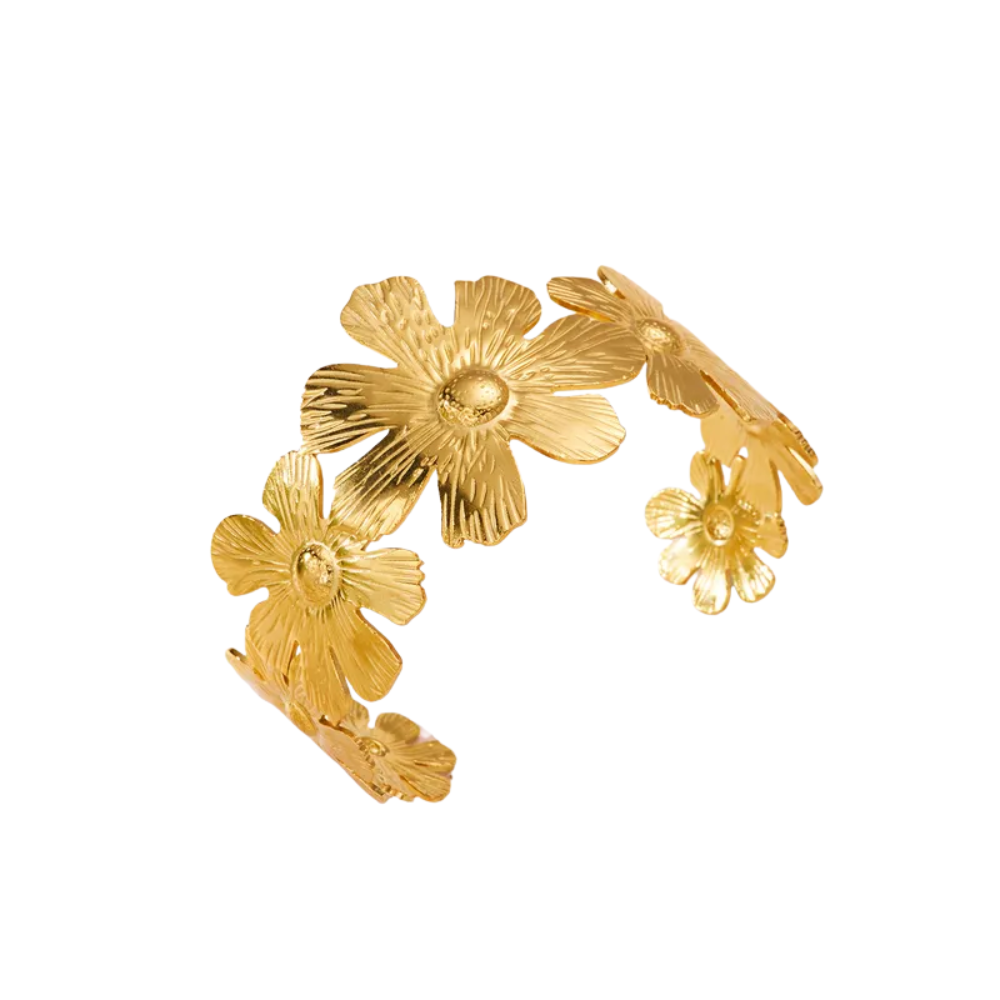 Flower Cuff Bracelet - Gold Plated Stainless Steel