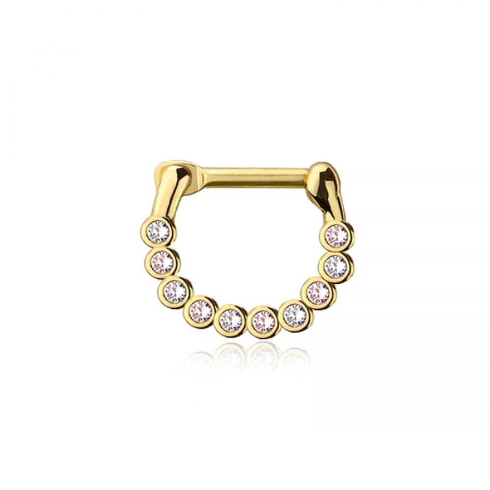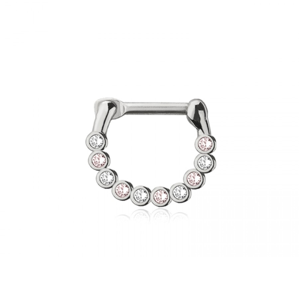 Pink and Clear Multi CZ Crystal Lined Septum Clicker Ring - 316L Stainless Steel