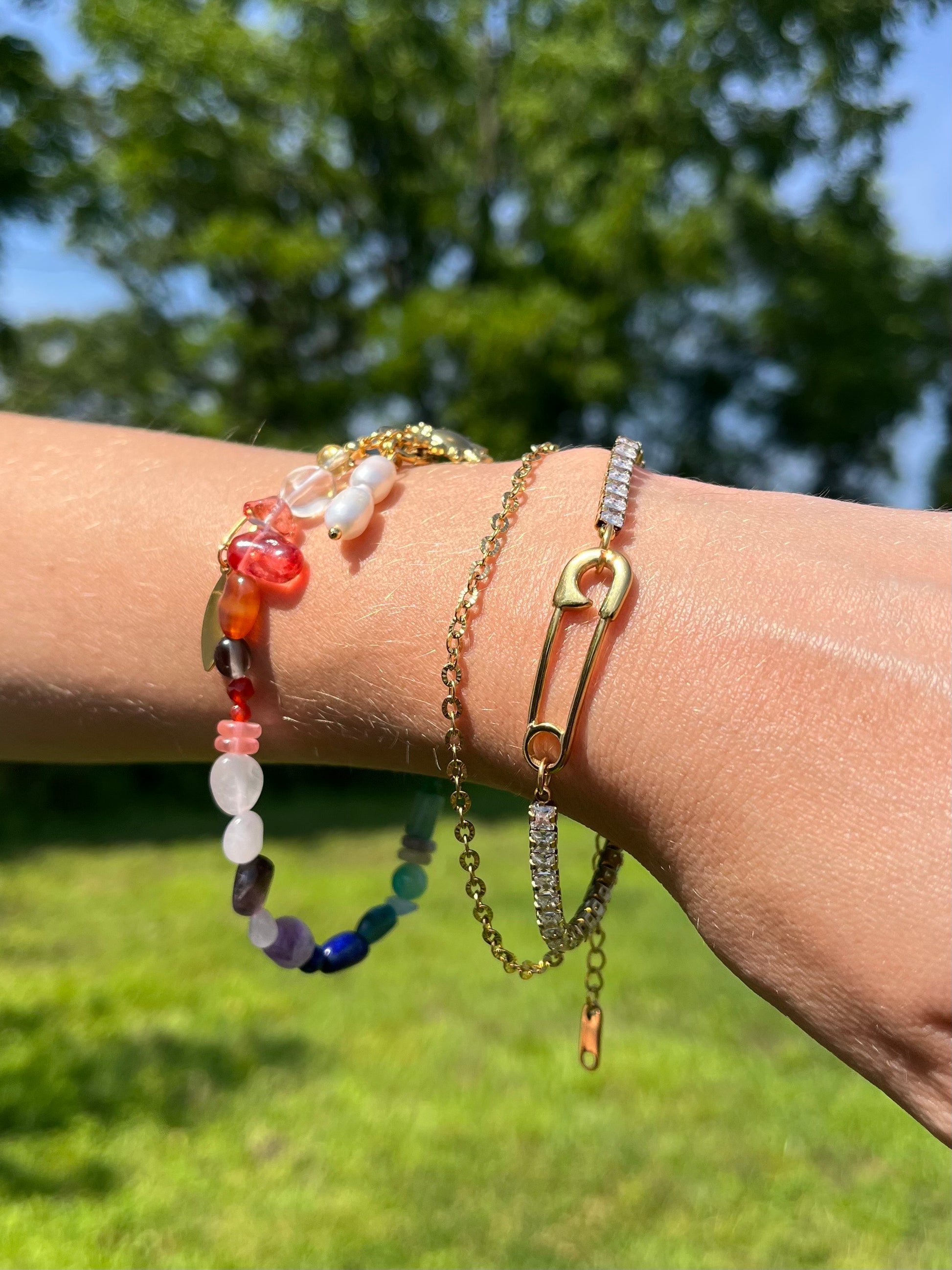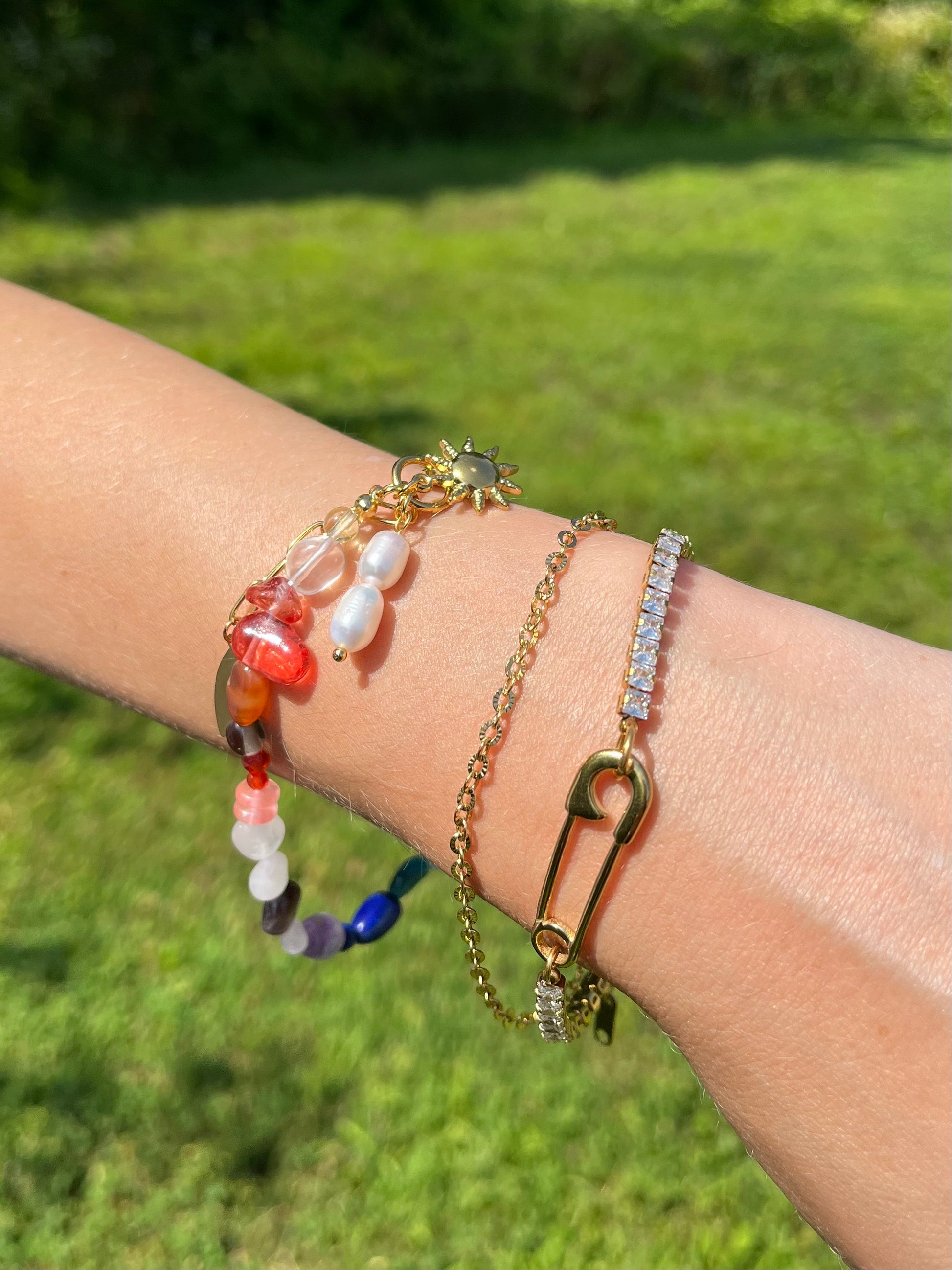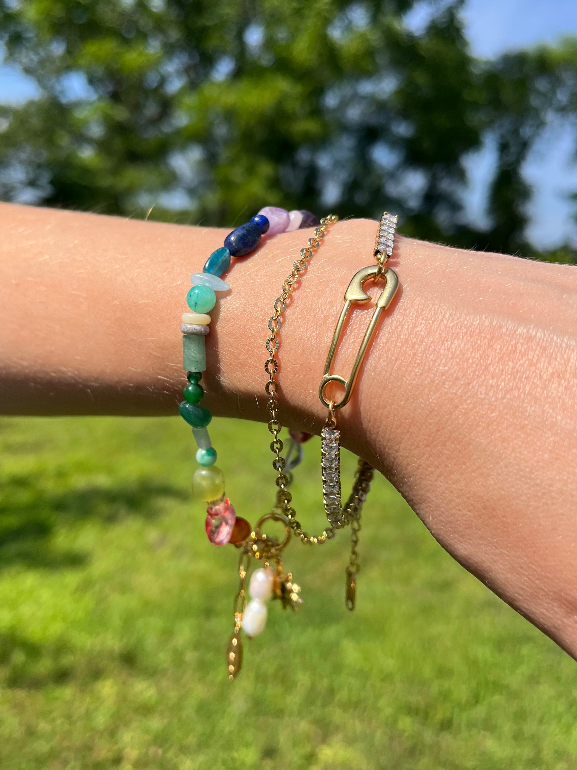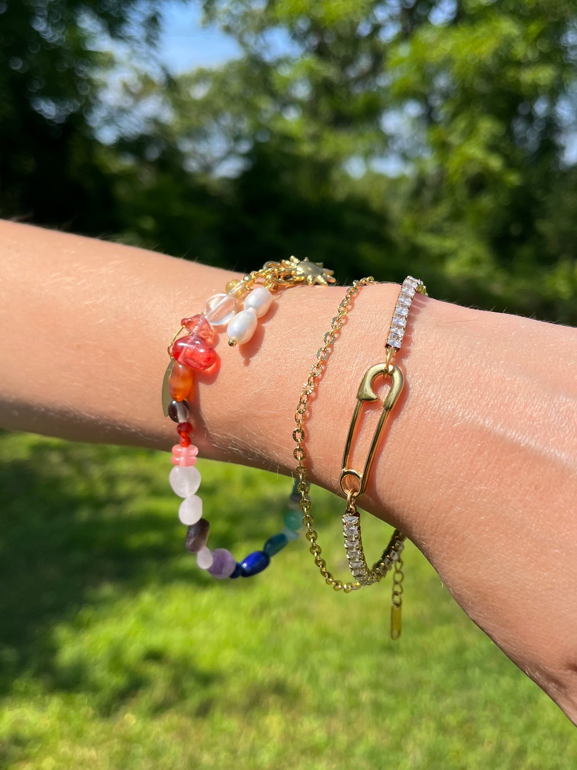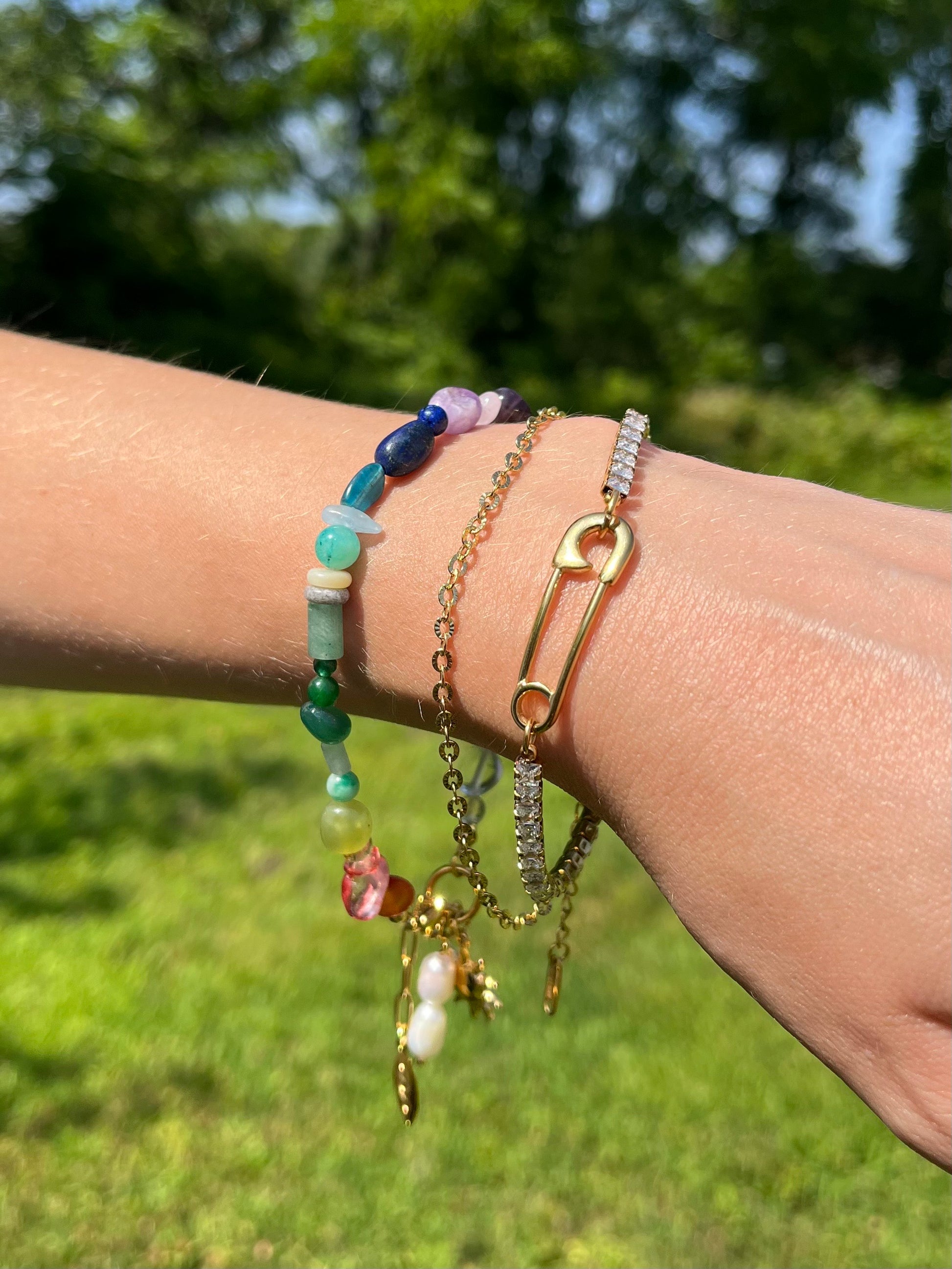 MATERIAL: gold plated stainless steel, beads, and synthetic pearls