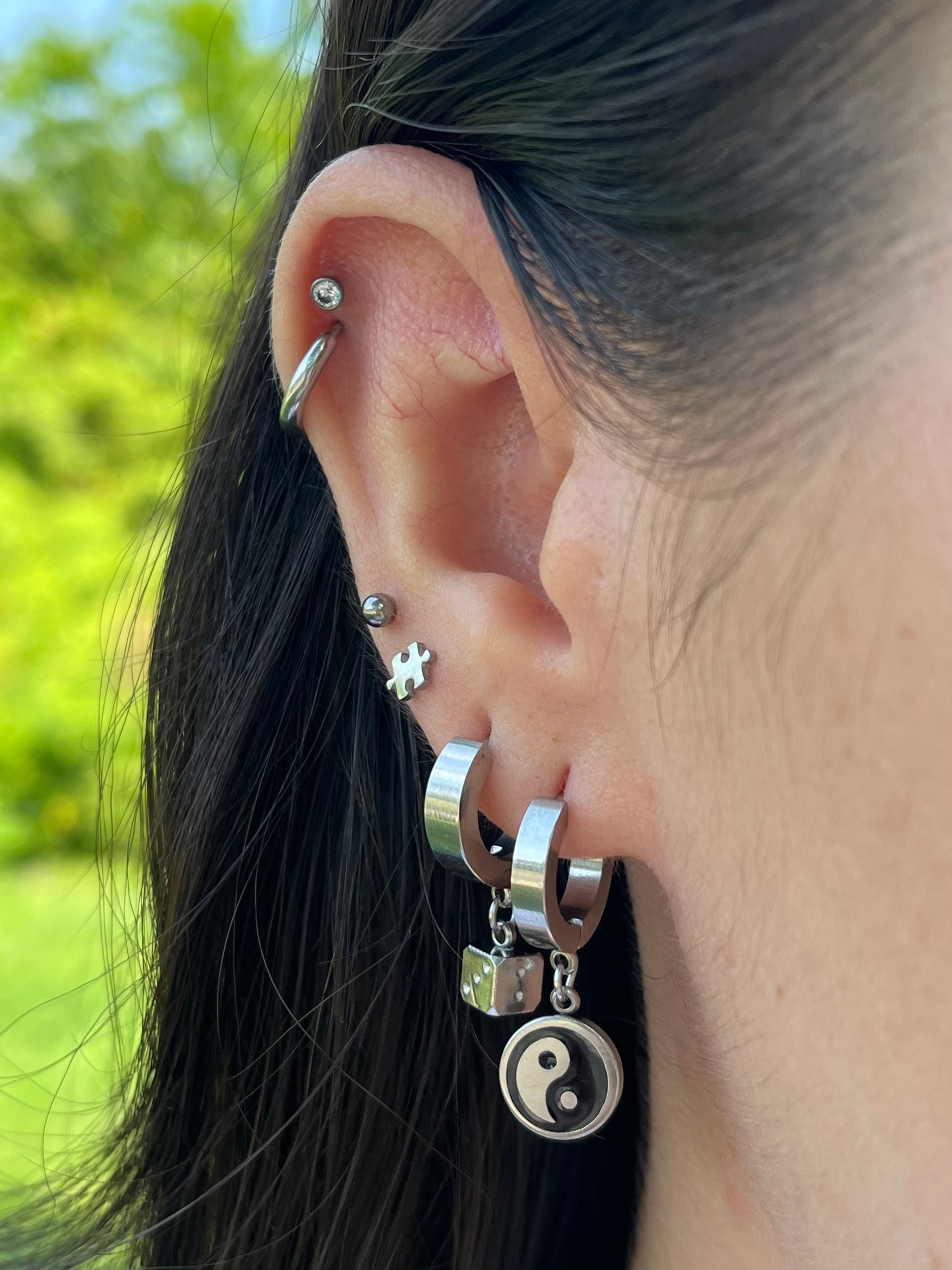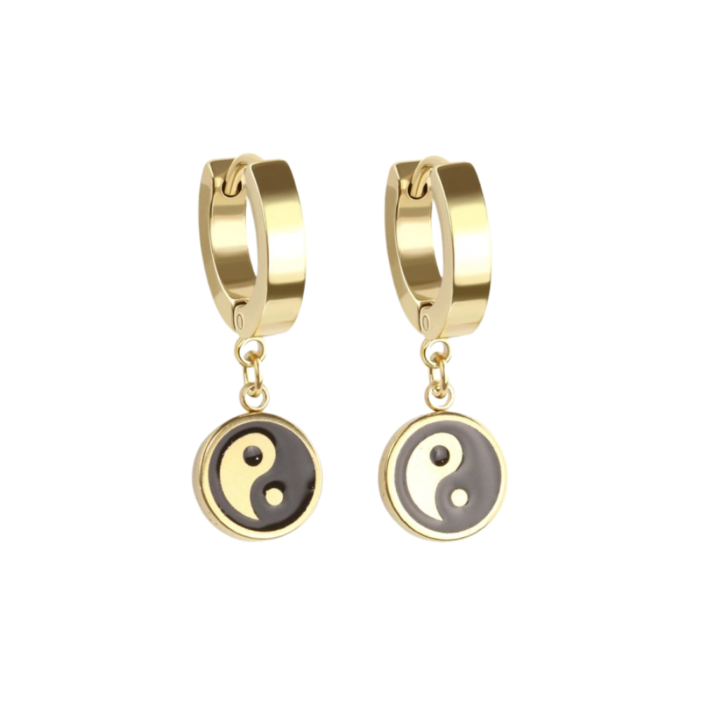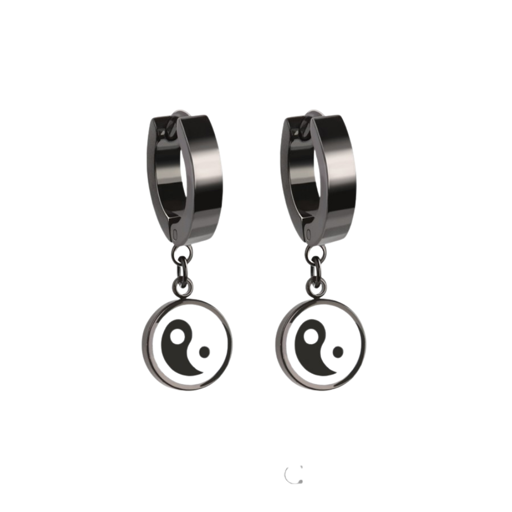 Yin Yang Dangling Huggie Hoop Earrings - Pair - 316L Stainless Steel